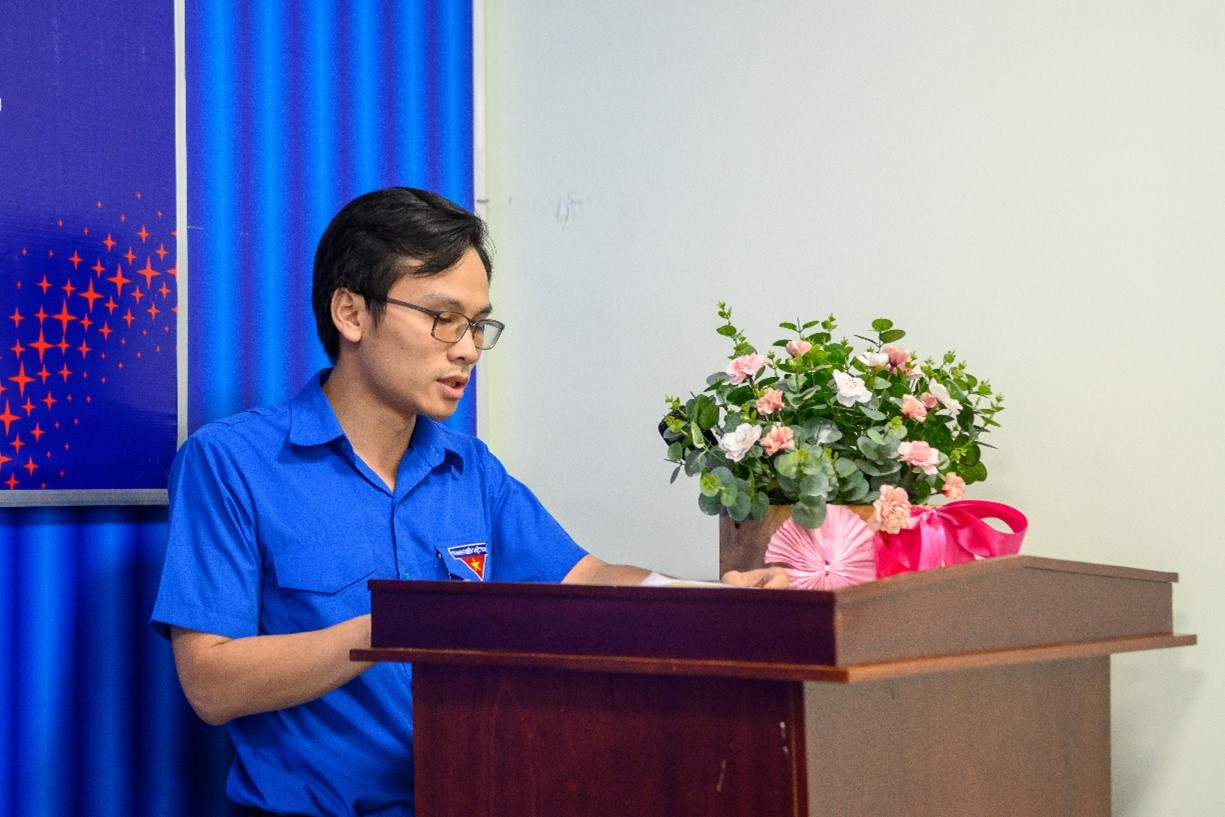 Đồng chí Nguyễn Chí Công - Phó Bí thư Chi đoàn Trung tâm Dịch vụ kỹ thuật 4 trình bày báo cáo tổng kết công tác đoàn nhiệm kỳ 2022-2024.