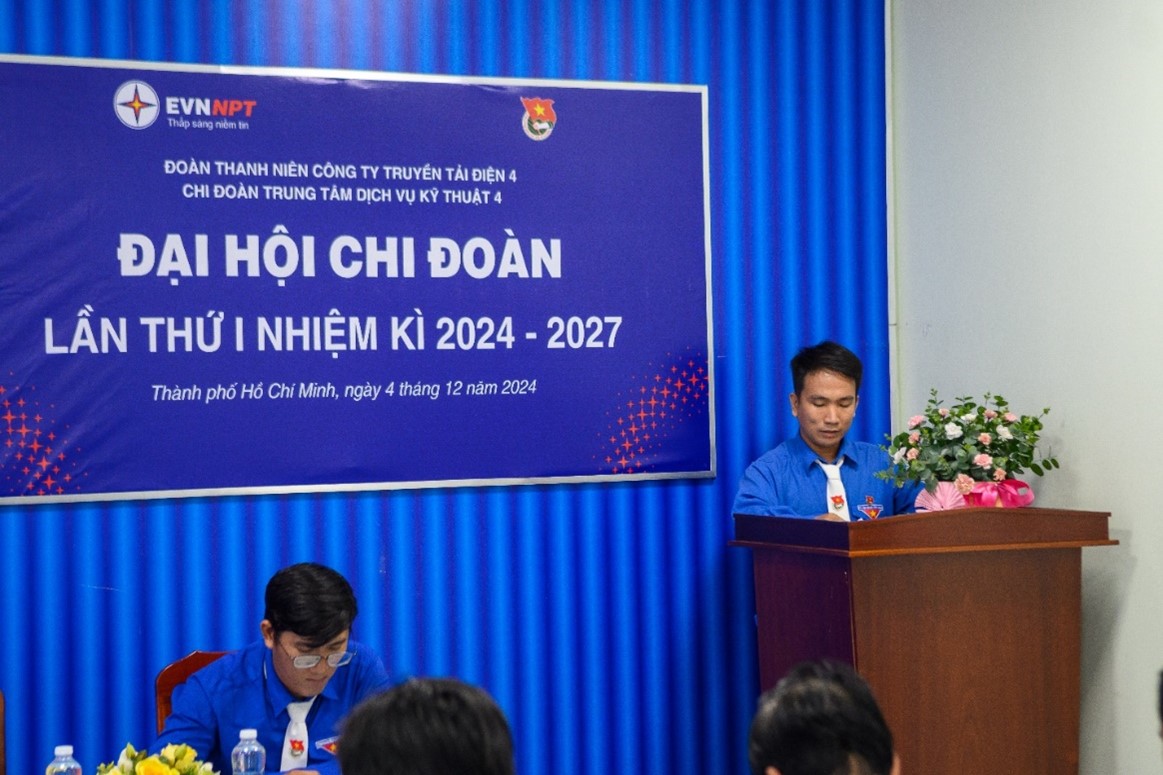 Phát biểu chỉ đạo tại Đại hội, đồng chí Nguyễn Duy Trung - Bí thư Đảng bộ bộ phận, Giám đốc Trung tâm Dịch vụ kỹ thuật 4 biểu dương và ghi nhận sự nỗ lực, cố gắng trong công tác Đoàn và phong trào thanh niên của Chi đoàn trong nhiệm kỳ vừa qua. Đồng thời nhấn mạnh nhiệm kỳ 2024-2027, Chi đoàn cần tiếp tục phát huy, thực hiện có hiệu quả hơn nữa trong công tác giáo dục chính trị tư tưởng, công tác chuyên môn, các phong trào sáng tạo của tuổi trẻ như công tác chuyển đổi số trong quản lý công tác đoàn, công tác quản lý kỹ thuật và các phong trào tình nguyện - an sinh xã hội…