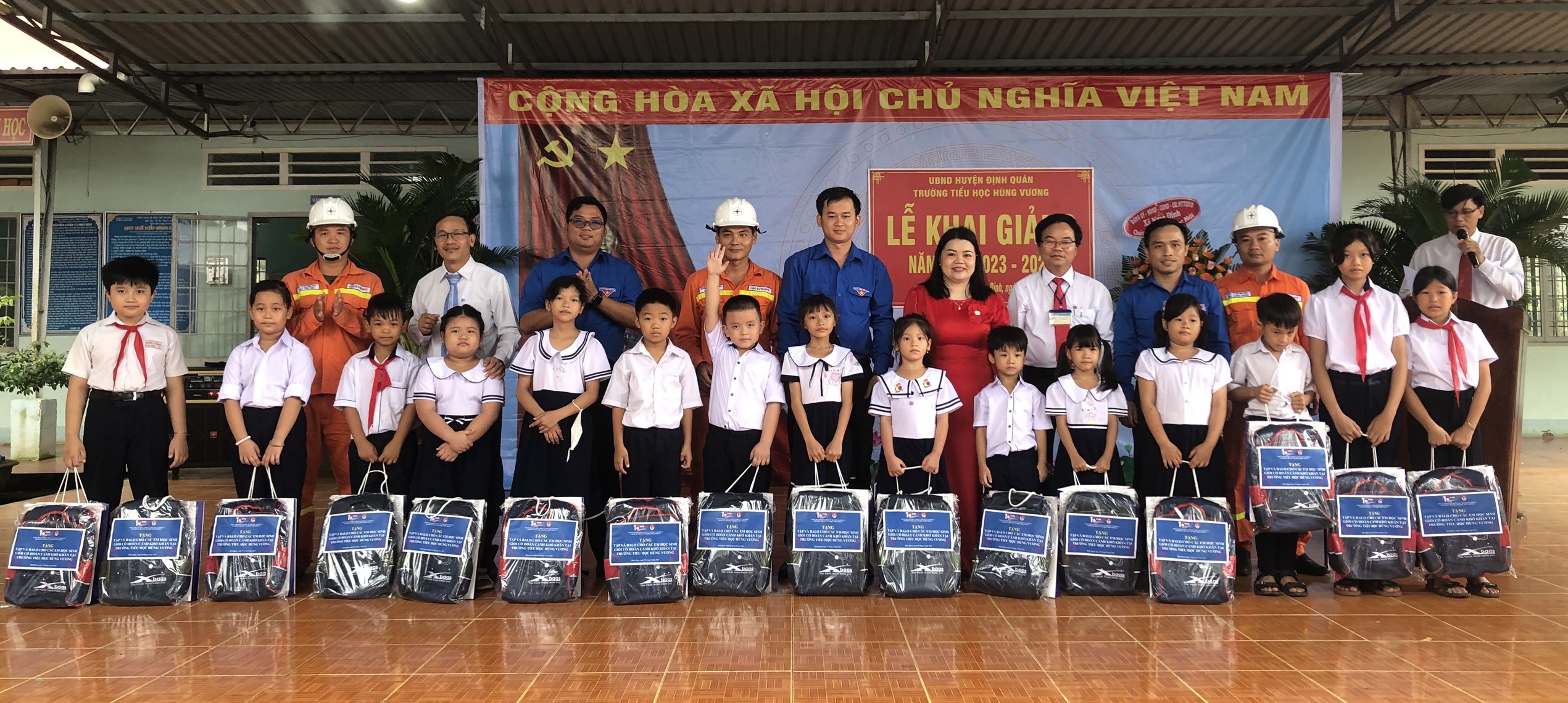 Được sự quan tâm, tạo điều kiện của Ban Thường vụ Đoàn thanh niên Công ty Truyền tải điện 4, Lãnh đạo Truyền tải điện Miền Đông 1 và sự đồng thuận của Ban Giám hiệu Trường Tiểu học Hùng Vương. Nhân ngày Lễ khai giảng 05/9/2023, Chi đoàn Truyền tải điện Miền Đông 1 đã triển khai chương trình phát tờ rơi tuyên truyền bảo vệ an toàn lưới điện cao áp cho học sinh, kết hợp thực hiện an sinh xã hội tại Trường. Chương trình có sự hiện diện của Thầy Dương Bá Cường – Hiệu trưởng, các thầy cô giáo và Cán bộ viên chức nhà trường. Về phía Lãnh đạo địa phương có đồng chí Nguyễn Mạnh Khoẻ, Chủ tịch xã Ngọc Định, về phía Chi đoàn Truyền tải điện Miền Đông 1 có đồng chí Nguyễn Huy Nam - Bí thư, ông Nguyễn Hữu Thành - đội trưởng đội Truyền tải điện Định Quán cùng các đồng chí trong Ban Chấp hành Chi đoàn và Đoàn viên Thanh niên phân đoàn 4.