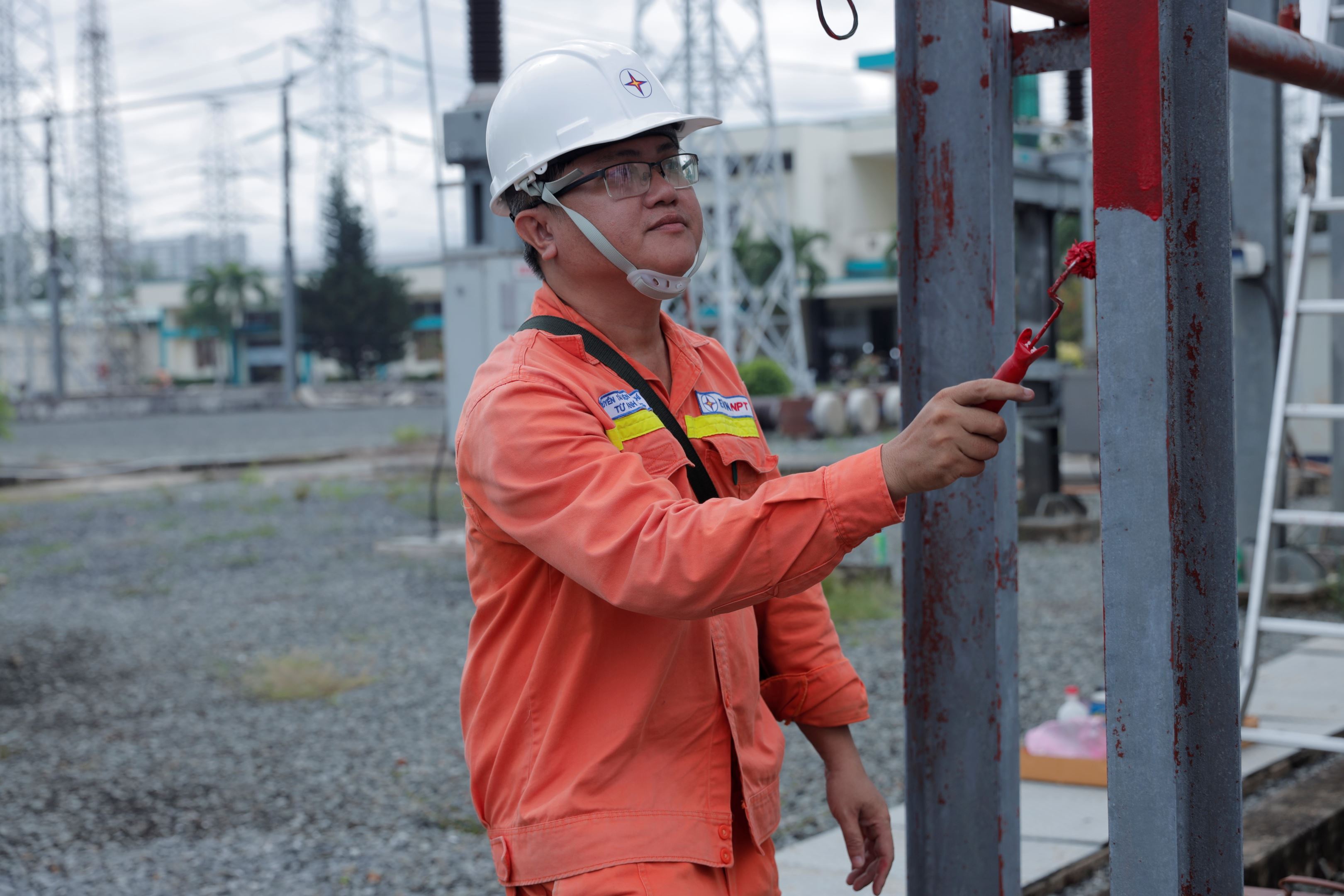 Các Đoàn viên thanh niên TTĐHCM tham gia công trình sơn hệ thống PCCC Kháng KH502 tại trạm 500kV Phú Lâm