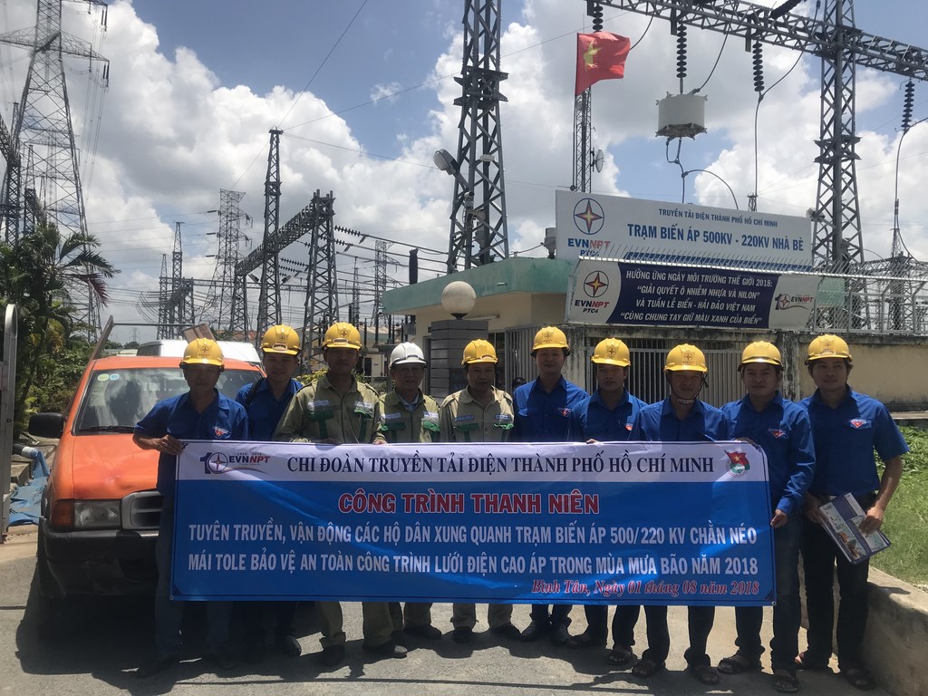 Hiện nay, thời tiết đang vào mùa mưa bão, diễn biến phức tạp, bất thường mưa kèm theo giông, lốc nguy cơ cuốn bay mái tôn, tấm bạt, nilon,... vào các Trạm biến áp, đường dây nên ngoài công tác tuyên truyền hành lang an toàn lưới điện cao áp, điểm nhấn trong chương trình lần này của Chi đoàn TTĐHCM là vận động và hỗ trợ người dân xung quanh các trạm biến áp trên địa bàn nêu trên thực hiện chằng néo, gia cố mái nhà, sắp xếp vật liệu,… để không bị gió lốc cuốn vào trạm biến áp hoặc đường dây gây sự cố. Nhờ sự hỗ trợ của lực lượng điều hành viên Trạm 500kV Nhà Bè để nhận định và đánh giá rủi ro về việc nhà dân xung quanh có thể tốc mái tôn, bay vào trạm biến áp, Chi đoàn TTĐHCM đã thực hiện giúp người dân chằng néo được 05 căn nhà.