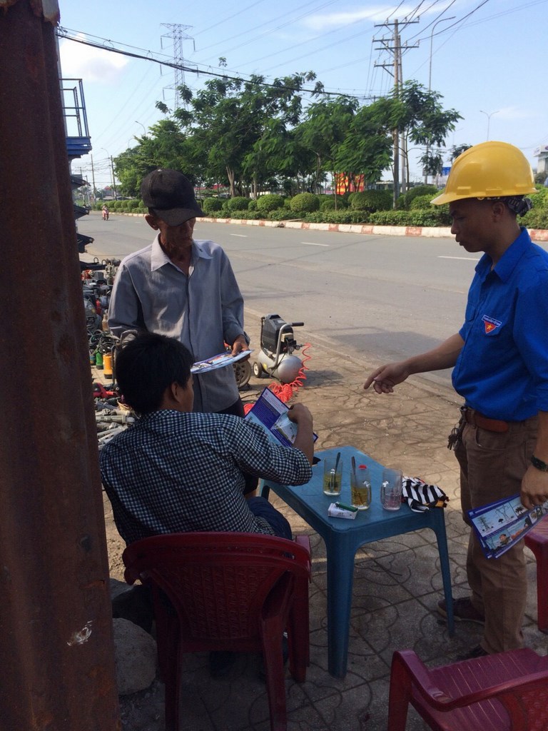 Phát tờ rơi cho hộ dân xung quanh Trạm biến áp 220kV Hóc Môn
