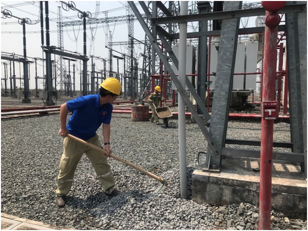 Chi đoàn TTĐHCM đã triệu tập các đoàn viên từ các Phân đoàn, với tổng số 22 đoàn viên cùng tham gia thực hiện. Xác định đây là công việc cần nhiều thể lực, Chi đoàn đã chia các đoàn viên thành 03 nhóm và phân công ở 03 khu vực gồm sân ngắt 500kV, 200kV và 110kV Trạm 500kV Cầu Bông. Các đoàn viên tiến hành dùng các xe rùa chở đá đã được tập kết sẵn ở các khu vực và đẩy đi rải bù ở những vị trí ít đá, dưới sự hướng dẫn của điều hành viên Trạm. Sau một ngày làm việc nhiệt tình, Chi đoàn đã thực hiện bổ sung được 20m3 đá (1x2) cm cho toàn khu vực Trạm. Công trình được ước tính với tổng giá trị khoảng 14 triệu đồng.
