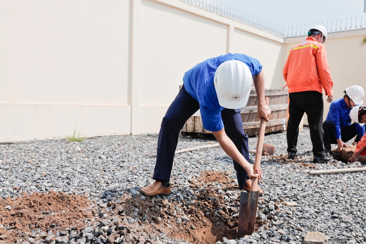 Tham dự công trình gồm các đồng chí: Lê Minh Tuấn- Bí thư chi đoàn TTĐHCM, Nguyễn Bảo Châu-Tổ trưởng tổ thao tác lưu động Bến Lức cùng các đoàn viên chi đoàn TTĐHCM tham gia hưởng ứng, theo kế hoạch, nhóm thực hiện công trình của chi đoàn sẽ thực hiện đào và đưa những cây xanh vào những vị trí đã được đánh dấu từ trước. Kết hợp trồng thêm hoa kiểng vào các chậu hoa phía trước phòng điều hành, bên cạnh đó chi đoàn còn cùng cán bộ công nhân viên của trạm tiến hành quét dọn, thu gom rác thải, tổng vệ sinh khu vực xung quanh trạm biến áp.
