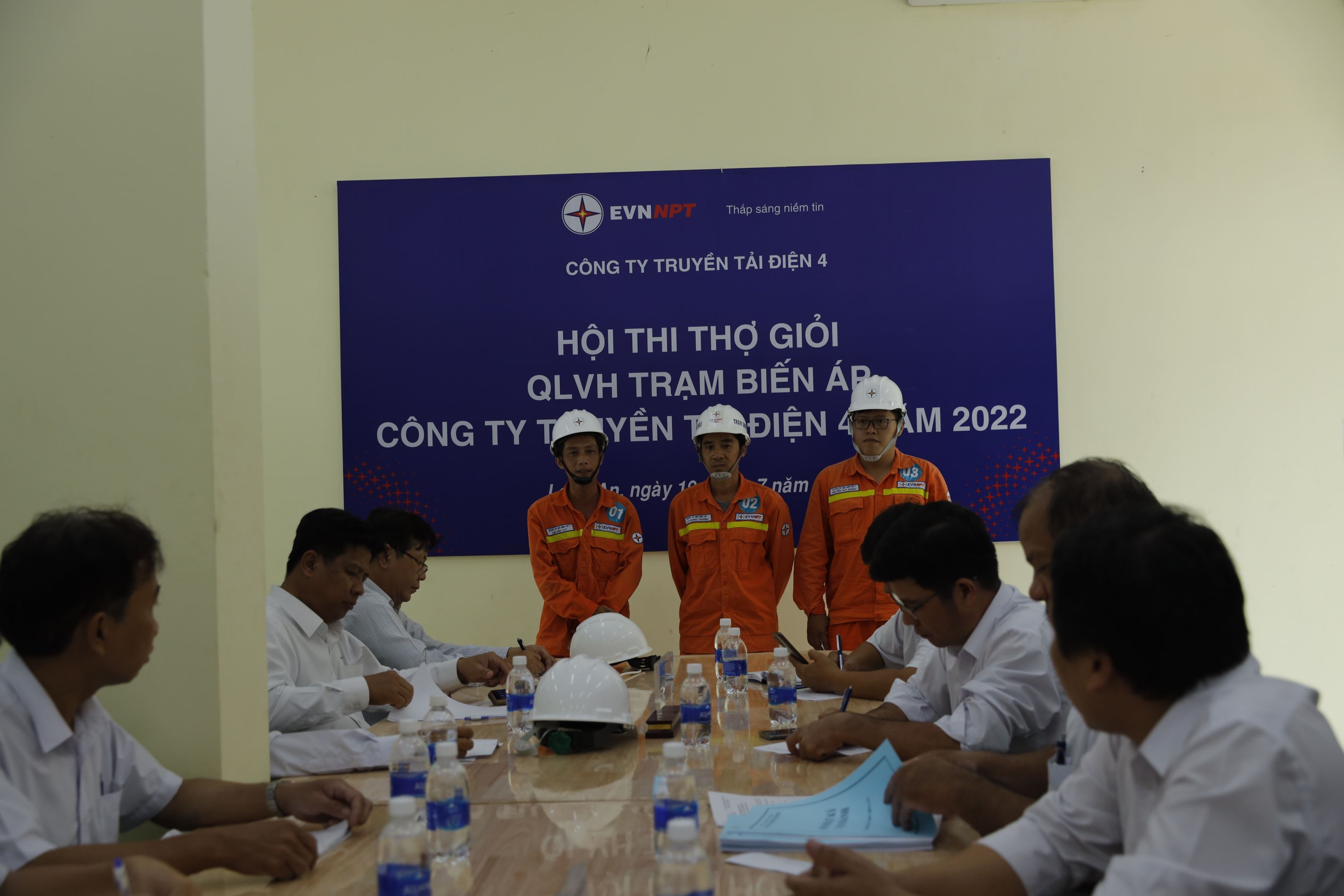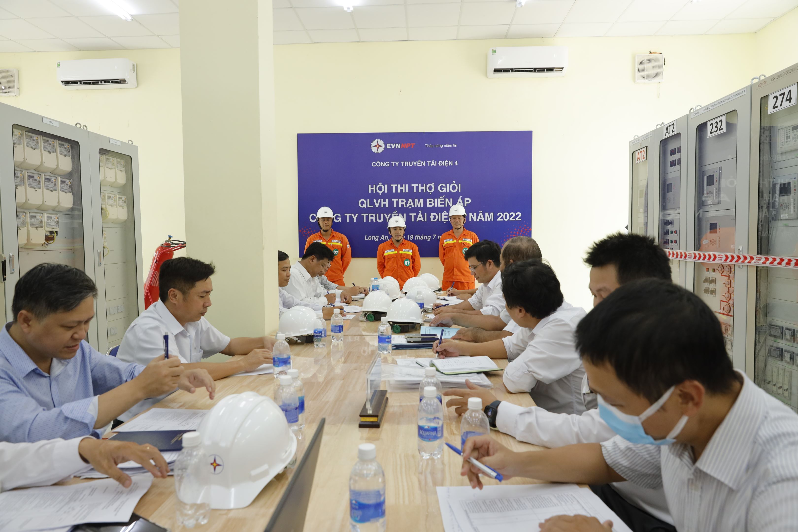 Ban giám khảo phần thi vận hành TBA đang triển khai phương thức chấm thi.