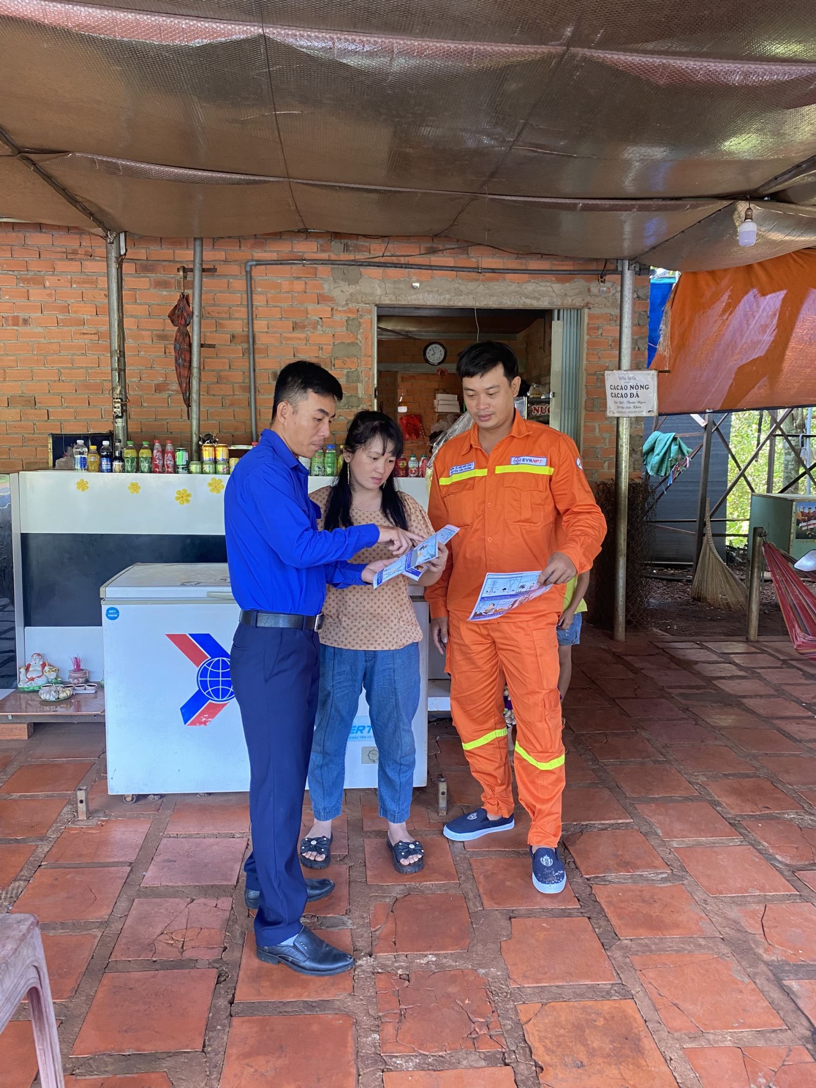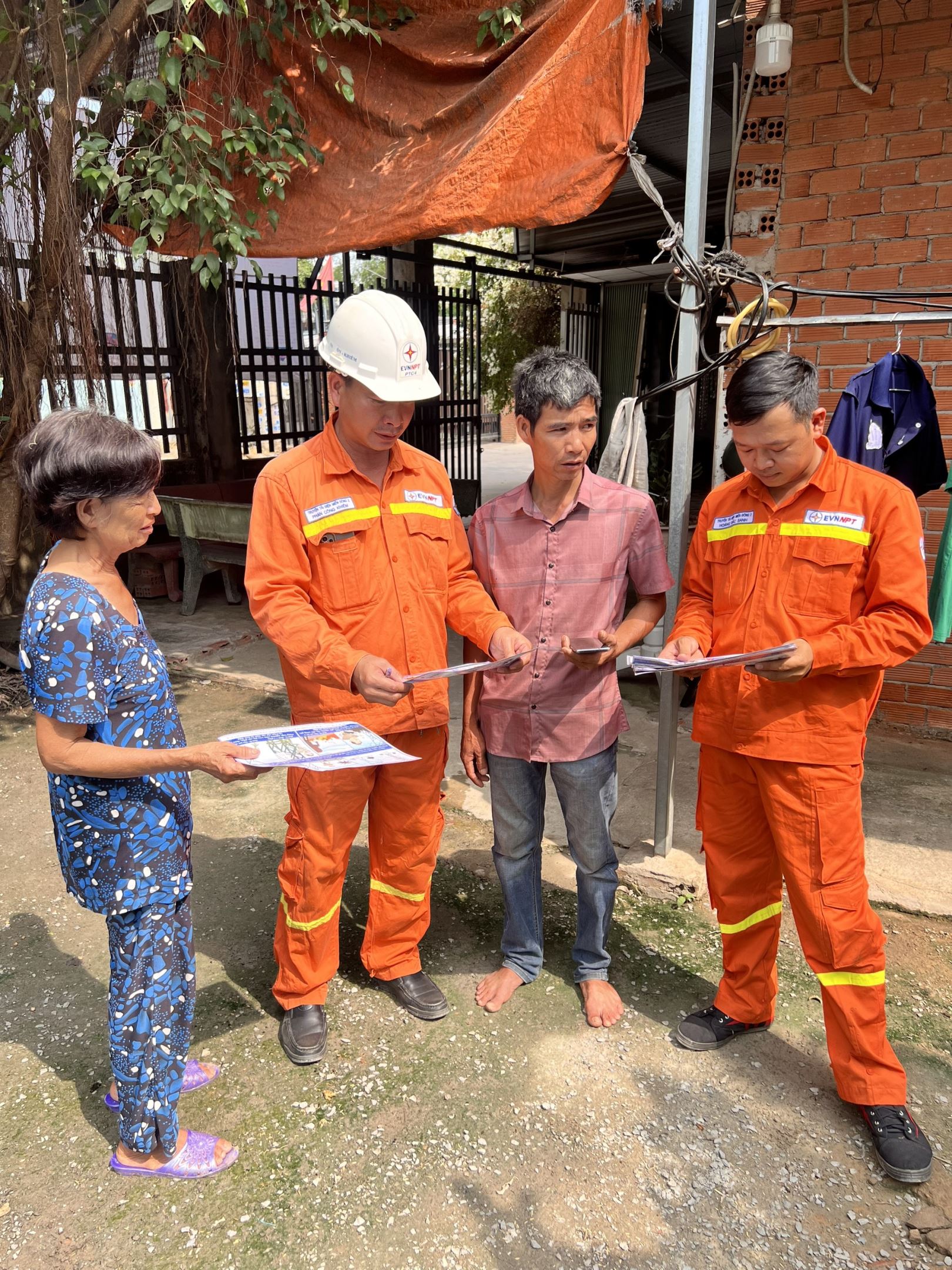 Đội Truyền tải điện Thủ Dầu Một phát tờ rơi tuyên truyền và hướng dẫn các nguy cơ mất na toàn cho người dân sống gần hành lang bảo vệ lưới điện