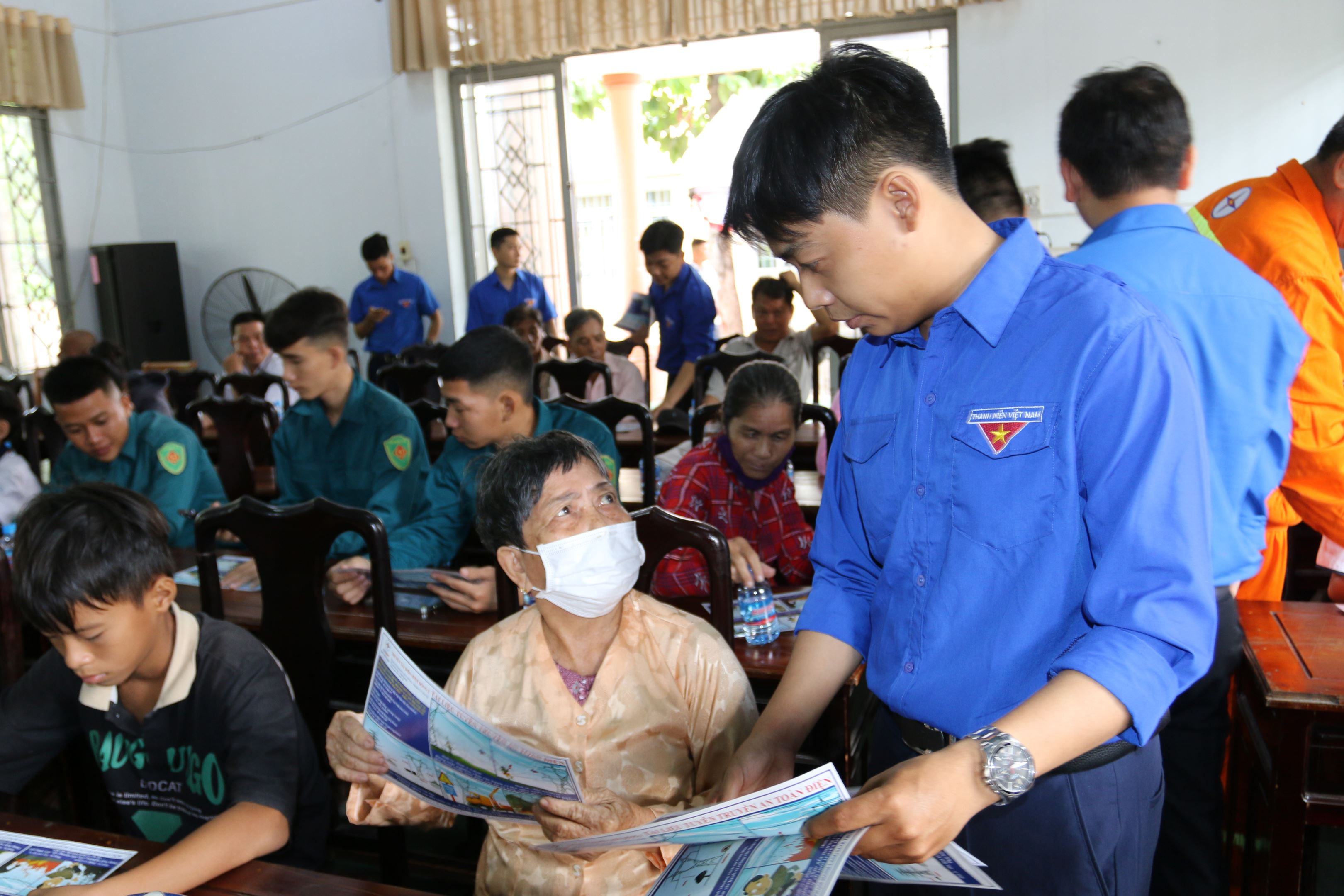 Tổ chức phát tờ rơi tuyên truyền bảo vệ hành lang lưới điện cho người dân.