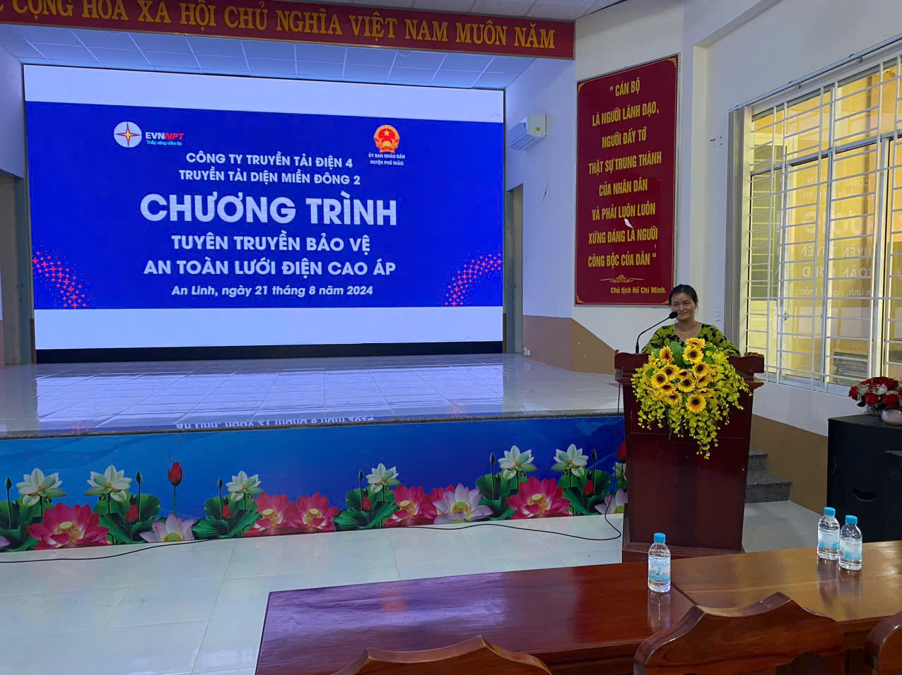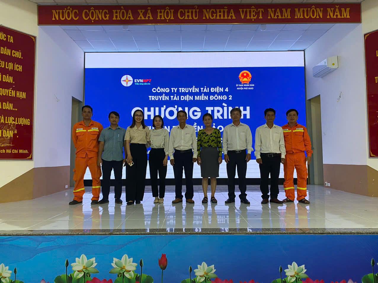 Nhằm nâng cao nhận thức của người dân trên địa bàn các xã, phường thuộc huyện Phú Giáo, tỉnh Bình Dương những kiến thức pháp luật về an toàn điện và bảo vệ an toàn hành lang lưới điện cao áp. Đặc biệt là các hộ dân sống gần khu vực có đường dây cao áp 500kV đi qua nhằm bảo đảm lưới điện đươc vận hành an toàn liên tục, đặc biệt là dịp Lễ 2/9/2024 sắp tới. Trong các ngày từ 20,21/8/2024; các Đội Truyền tải điện Chơn Thành và Đồng Xoài thuộc Truyền tải điện miền Đông 2 - Công ty Truyền tải điện 4 đã phối hợp với Phòng Kinh tế huyện Phú Giáo tổ chức chương trình tuyên truyền bảo vệ hành lang an toàn lưới điện cáo áp trên địa bàn các xã An Long, Tân Long, An Thái, An Linh của huyện Phú Giáo, tỉnh Bình Dương.