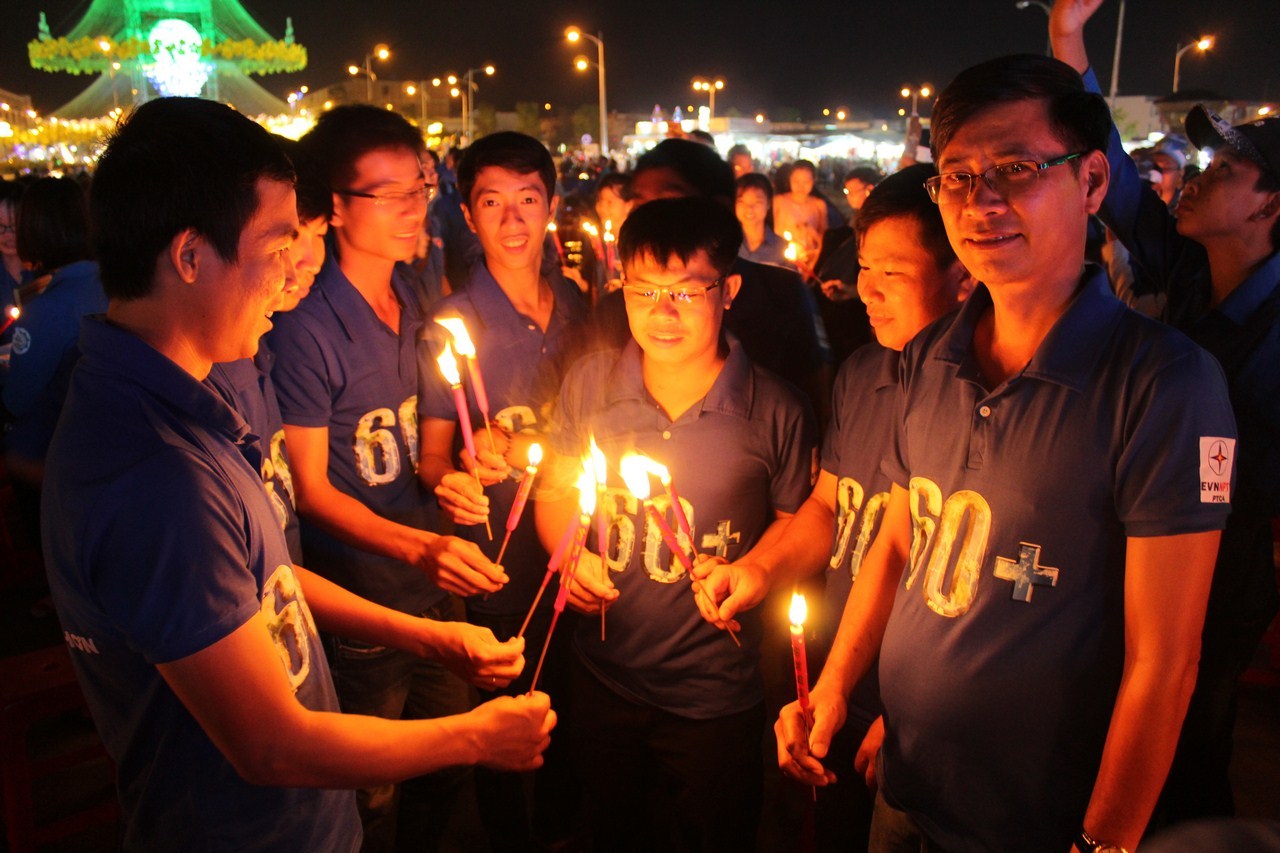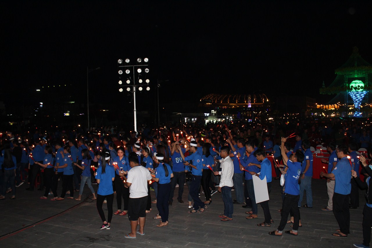 Đoàn người thắp nến bắt đầu từ khu đa hợp Quảng trường Khu đô thị Phú Cường diễu hành dọc tuyến đường 3/2