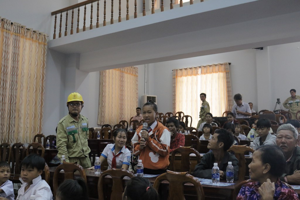 Trong chương trình tuyên truyền tại hội trường UBND huyện, người dân địa phương và các em học sinh đã được báo cáo viên Đoàn thanh niên PTC4 tuyên truyền bằng nhiều hình thức đặc sắc, phong phú, sinh động đã thu hút sự quan tâm theo dõi của người dân, các nội dung phổ biến nêu rõ tình hình thực tế về hậu quả của các hành vi vi phạm hành lang an toàn lưới điện cao áp, ngoài ra còn có các đoạn phim tuyên truyền do EVNNPT phát hành, các bản tin thời sự, phóng sự của đài truyền hình đã phát như các hành vi trộm cắp thiết bị lưới điện, đốt rừng, mía trong và gần hành lang gây sự cố, leo trèo trụ điện, gây thiệt hại về tính mạng và tài sản…, nội dung tuyên truyền gắn với tình hình trên địa bàn. Ngoài ra, để cho buổi tuyên truyền thêm phần gần gũi, lôi cuốn, thú vị hơn, chương trình còn tổ chức hỏi, đáp có phần quà, qua kết quả hưởng ứng trả lời câu hỏi của người dân, đã giúp cho chương trình khảo sát được mức độ nhận thức của người dân qua hoạt động tuyên truyền này, đồng thời có thể nắm bắt được tâm tư nguyện vọng của người dân về những khó khăn trong việc phòng tránh tai nạn điện, để kịp thời hỗ trợ người dân hiểu sâu hơn về các vấn đề được đặt ra, đây là việc làm thiết thực cho cộng đồng dân cư địa phương và cũng góp phần thực thi văn hóa trách nhiệm với cộng đồng xã hội của Đoàn thanh niên PTC4.