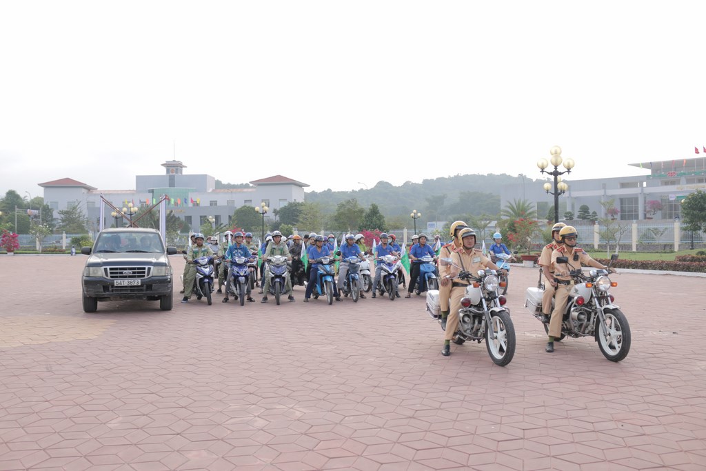 Đoàn xe chuẩn bị diễu hành tuyên truyền lưu động.