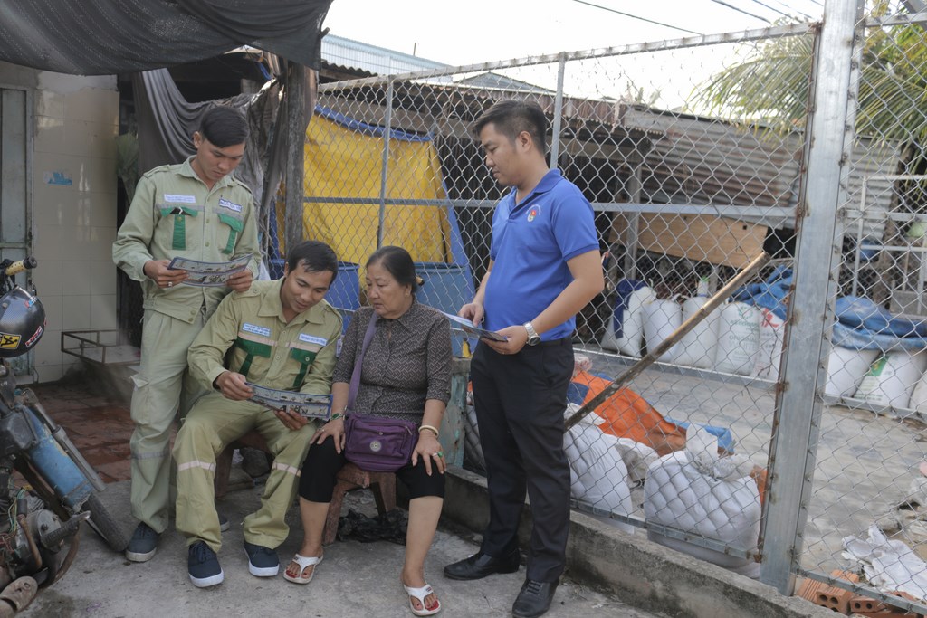 Đoàn thanh niên PTC4 tuyên truyền giải thích nội dung tờ rơi cho người dân.