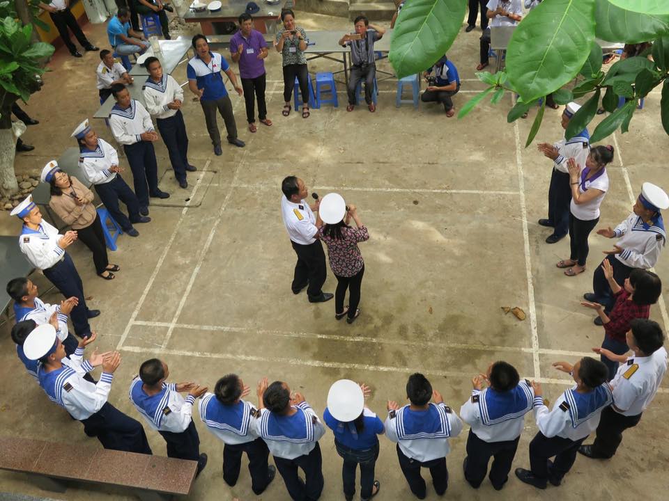 Thắm tình là vậy, ấm áp và nghẹn nghào là thế, nhưng có thể nói tất cả chúng tôi đều bồi hồi xúc động khi giữa bao la của biển trời, được cất lên lời hát Tiến Quân ca hùng tráng dưới lá cờ thiêng liêng của Tổ quốc khi đến với đảo Trường Sa lớn. Sau phần thăm hỏi tặng quà của ban tổ chức, chúng tôi lại cùng hòa mình với các Cán bộ chiến sỹ nơi đây. Lúc này, hầu như tất cả giọng nói của anh em trong đội đều khàn đặc, nhưng chính tình cảm và sự đón nhận nồng nhiệt của các quân dân trên đảo nên chúng tôi lại đốt cháy hết cảm xúc của mình với chương trình giao lưu văn nghệ thật hoành tráng.