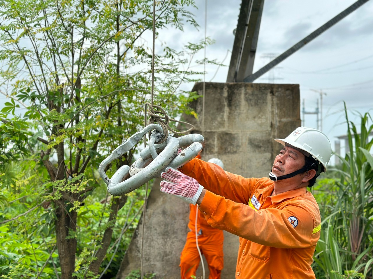 Anh Nguyễn Phước Tú thực hiện công tác bảo dưỡng, sửa chữa đường dây 500kV Phú Mỹ - Nhà Bè.