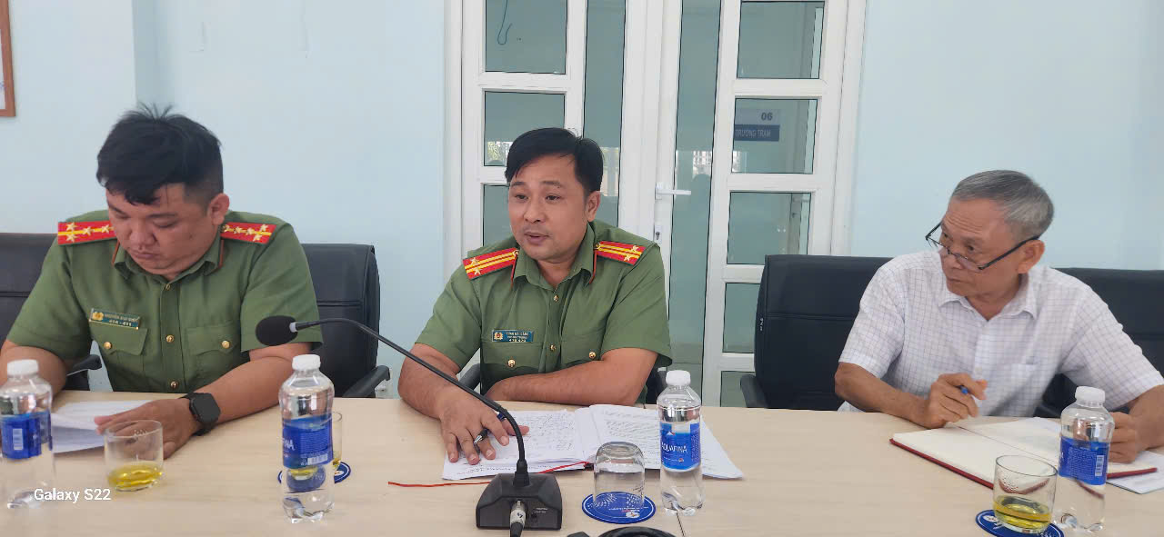 Trung tá Phan Hải Đăng – Phó Đội trưởng Đội 2 Phòng An ninh kinh tế - Công an tỉnh Tây Ninh phát biểu tại buổi làm việc.