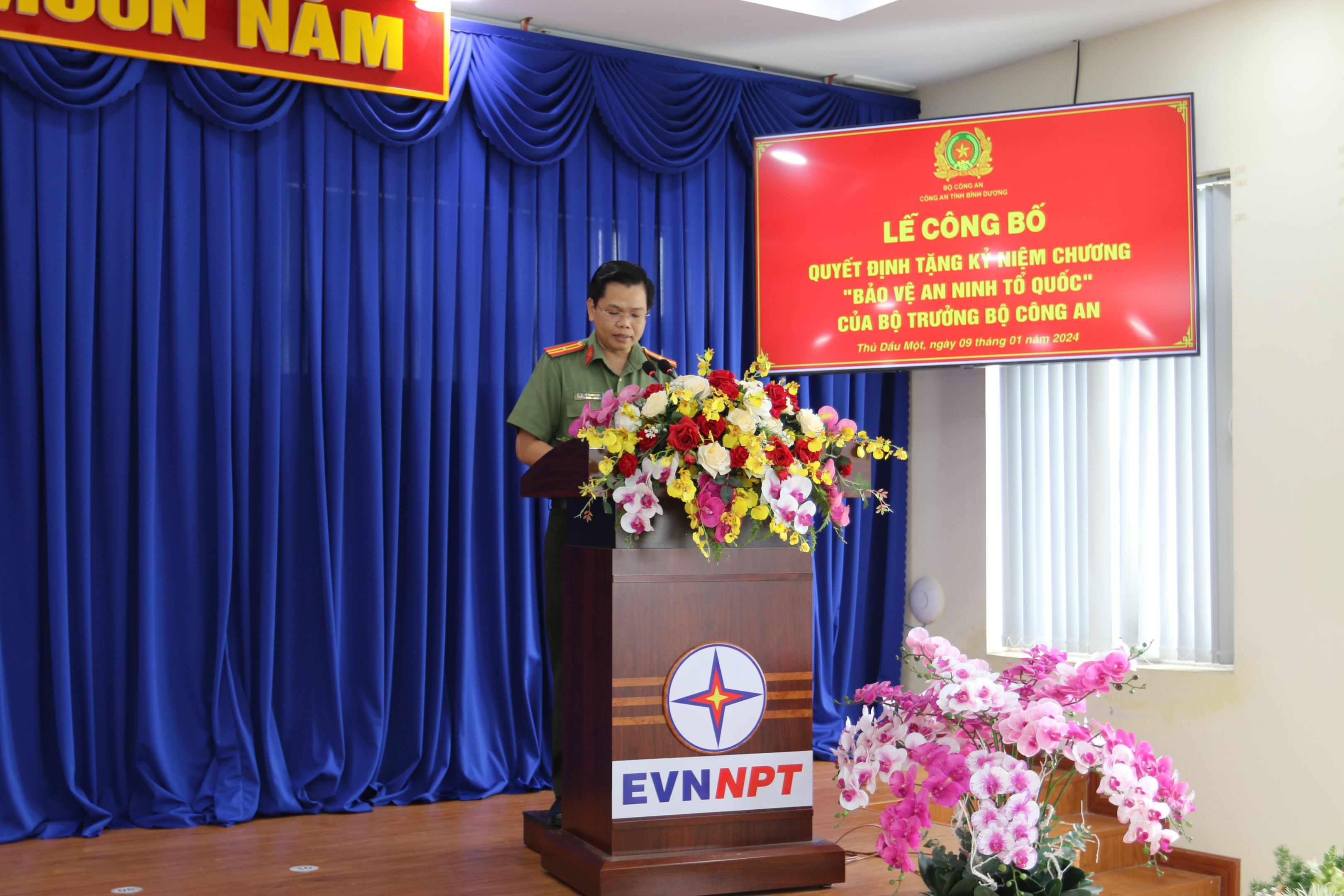 Đại diện lãnh đạo Công an tỉnh Bình Dương đã công bố quyết định của Bộ trưởng Bộ Công an và trao tặng Kỷ niệm chương “Bảo vệ an ninh Tổ quốc” cho đồng chí Bùi Văn Hoàng - Bí thư Đảng ủy, Giám đốc và đồng chí Đào Viết Trường - Trưởng phòng Tổng hợp Truyền tải điện miền Đông 2, Công ty Truyền tải điện 4 vì đã có nhiều đóng góp xây dựng môi trường tự quản bảo đảm “An toàn về an ninh trật tự” tại nơi làm việc gắn với phong trào thi đua lao động sản xuất, qua đó đã đem lại nhiều kết quả khả quan trên lĩnh vực giữ gìn an ninh trật tự, đảm bảo cung cấp điện an toàn liên tục, góp phần phát triển kinh tế - xã hội, an ninh quốc phòng trên địa bàn tỉnh Bình Dương.