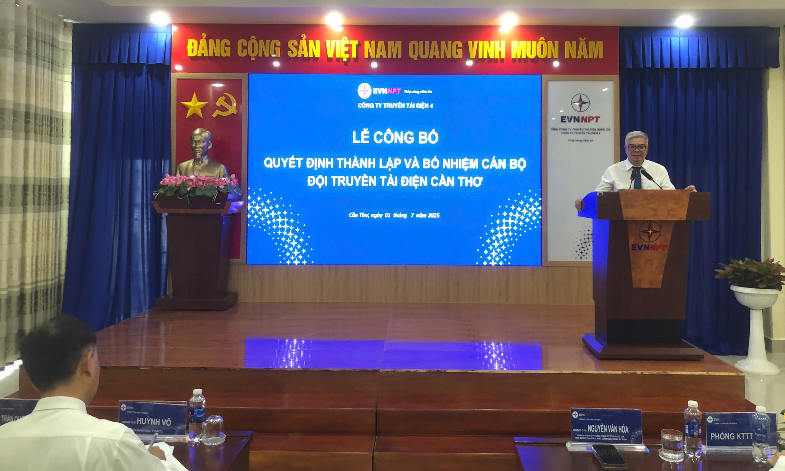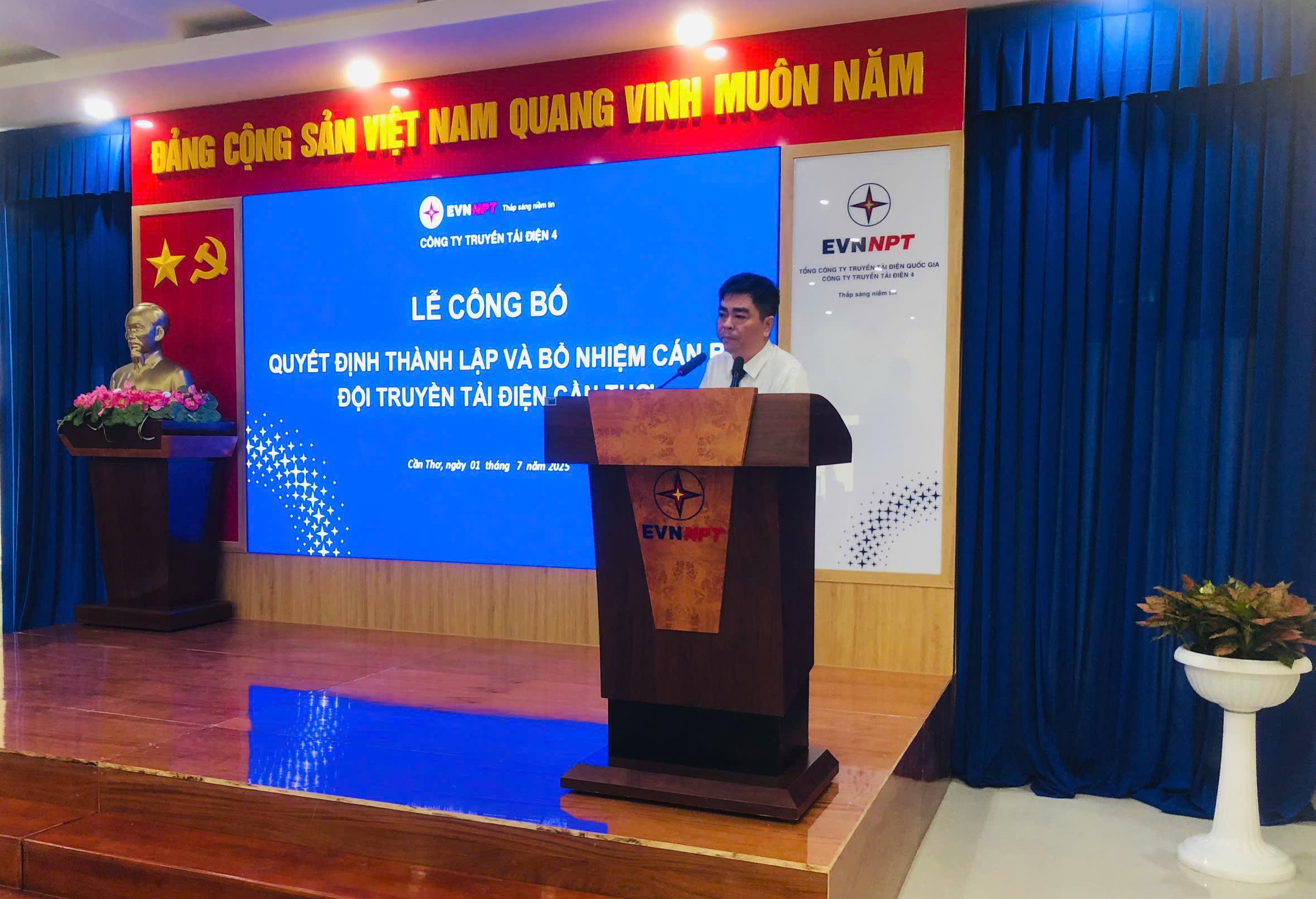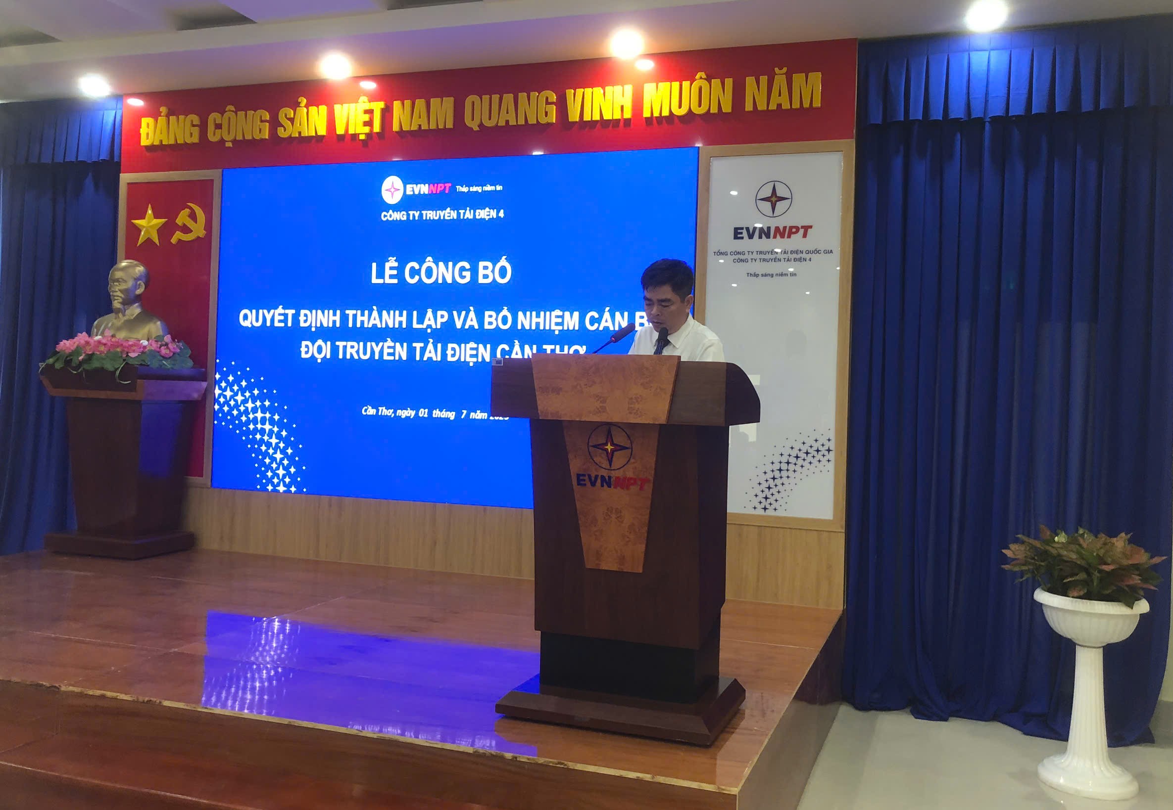 Ông Huỳnh Thanh Sơn – Phó phòng Tổ chức và Nhân sự, công bố Quyết định thành lập Đội Truyền tải điện Cần Thơ và bổ nhiệm Lãnh đạo Đội Truyền tải điện Cần Thơ.