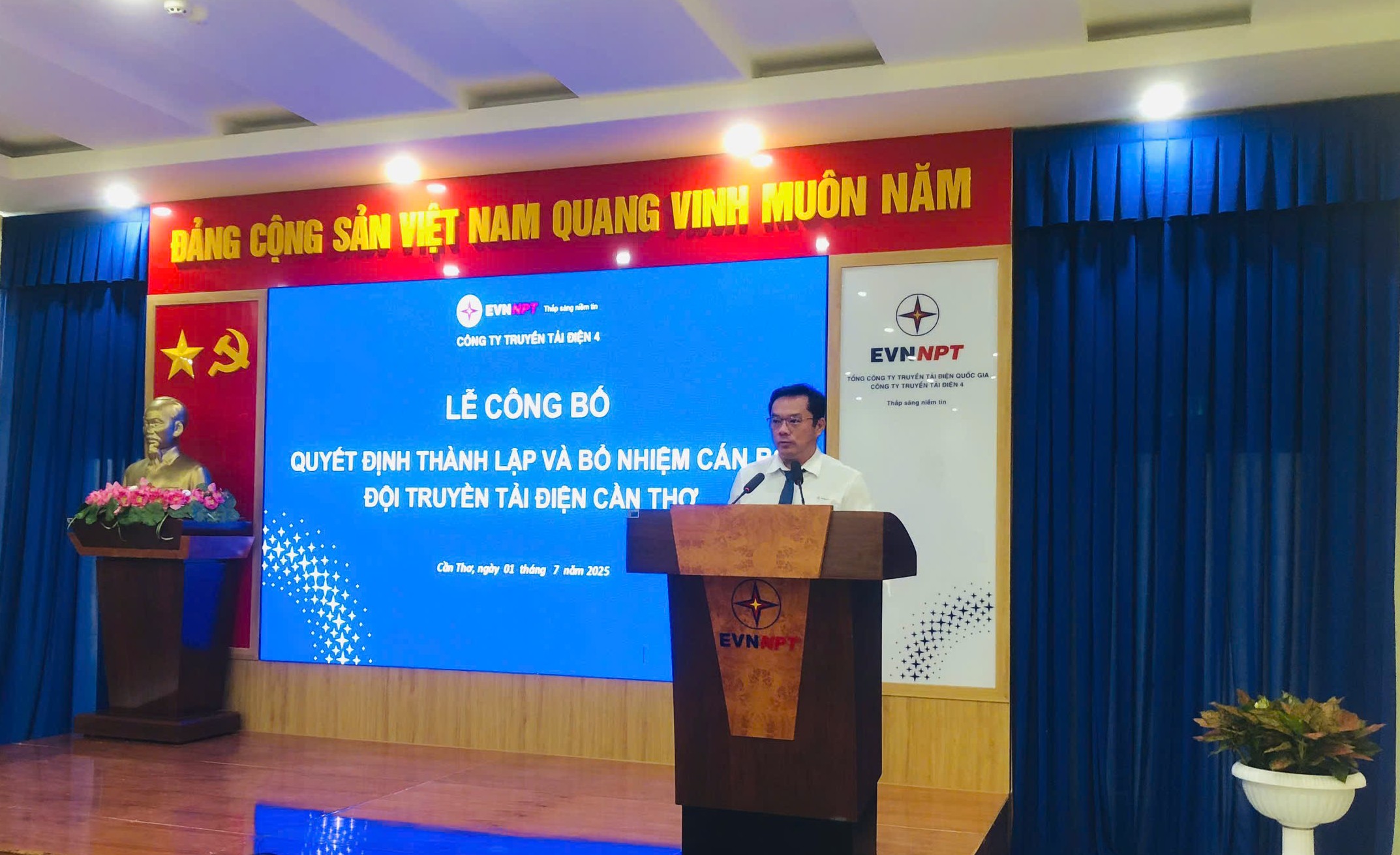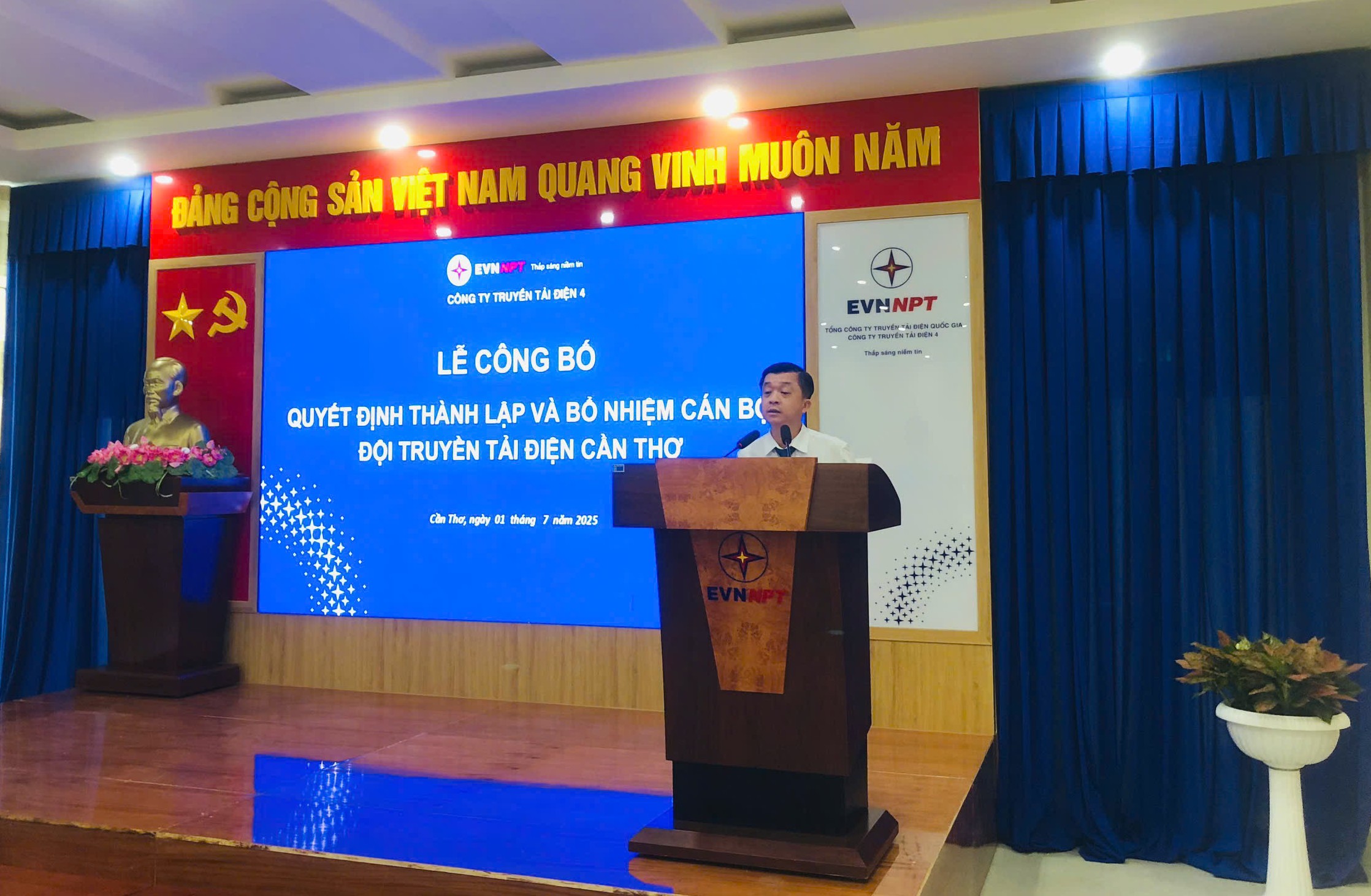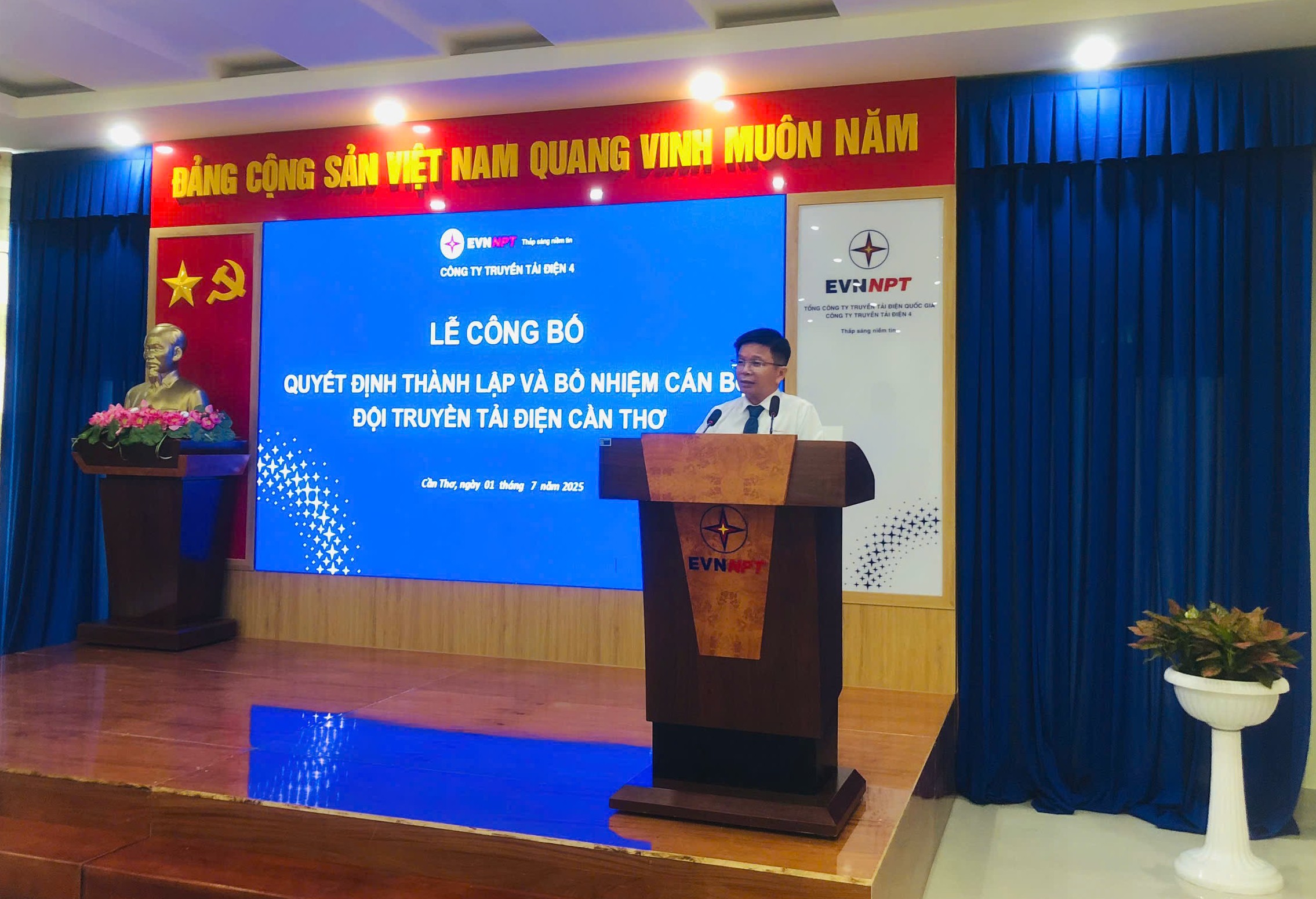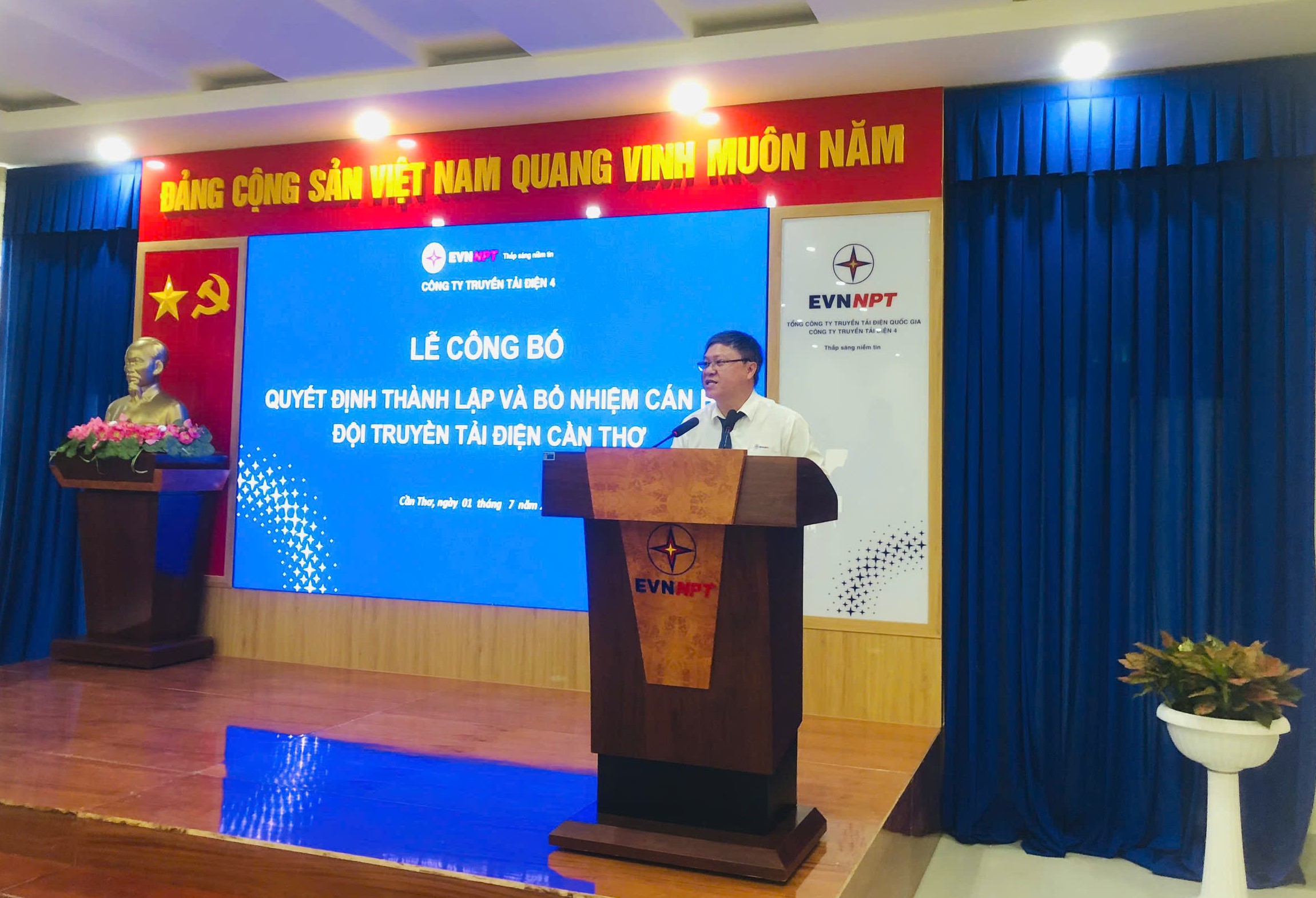 Ông Huỳnh Thanh Sơn – Phó phòng Tổ chức và Nhân sự, công bố Quyết định thành lập Đội Truyền tải điện Cần Thơ và bổ nhiệm Lãnh đạo Đội Truyền tải điện Cần Thơ.
