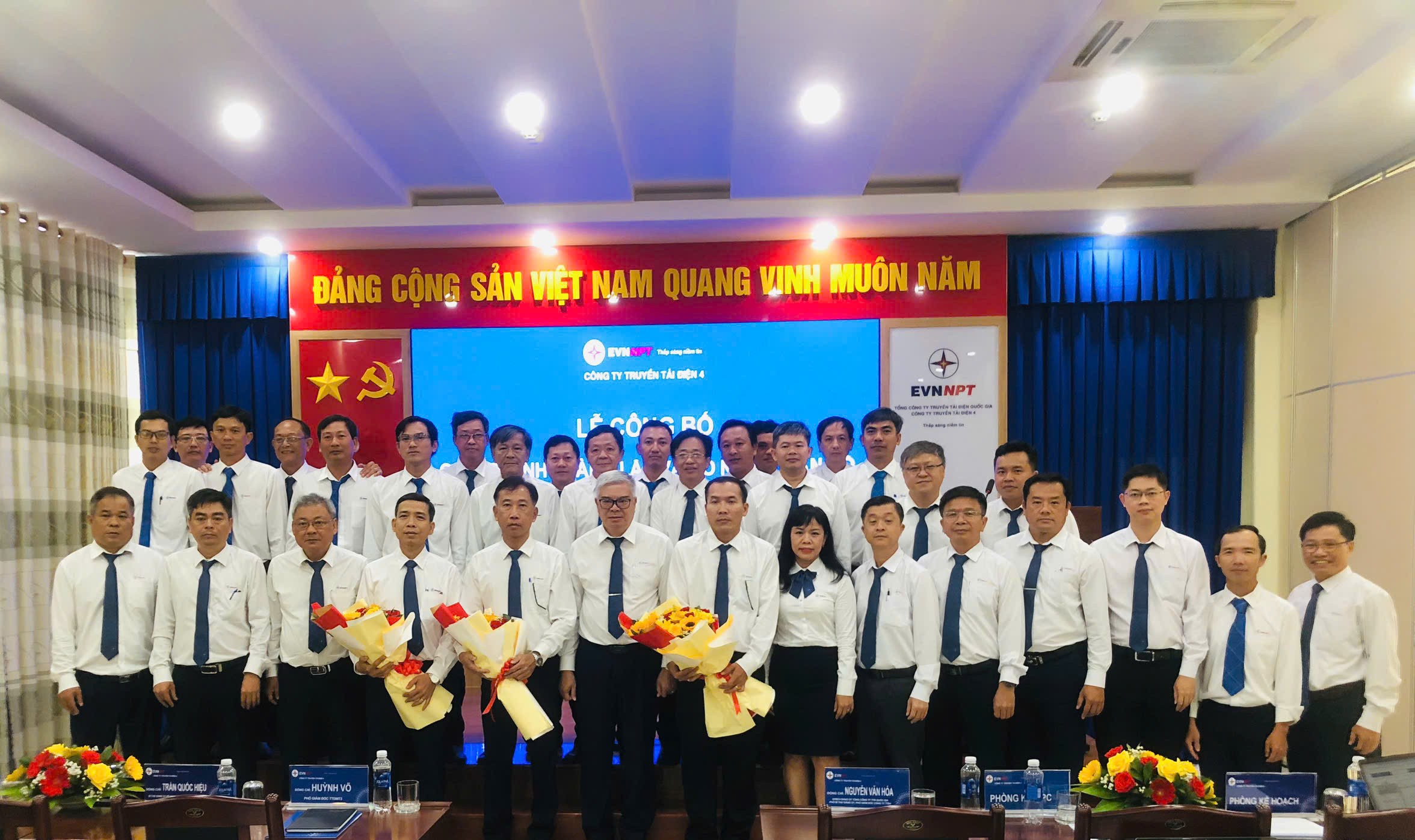 Ông Nguyễn Văn Hóa, Phó Bí thư Đảng ủy – Phó Giám đốc Công ty Truyền tải điện 4, trao Quyết định bổ nhiệm chức vụ Đội Trưởng, Đội Phó Đội Truyền tải điện Cần Thơ.