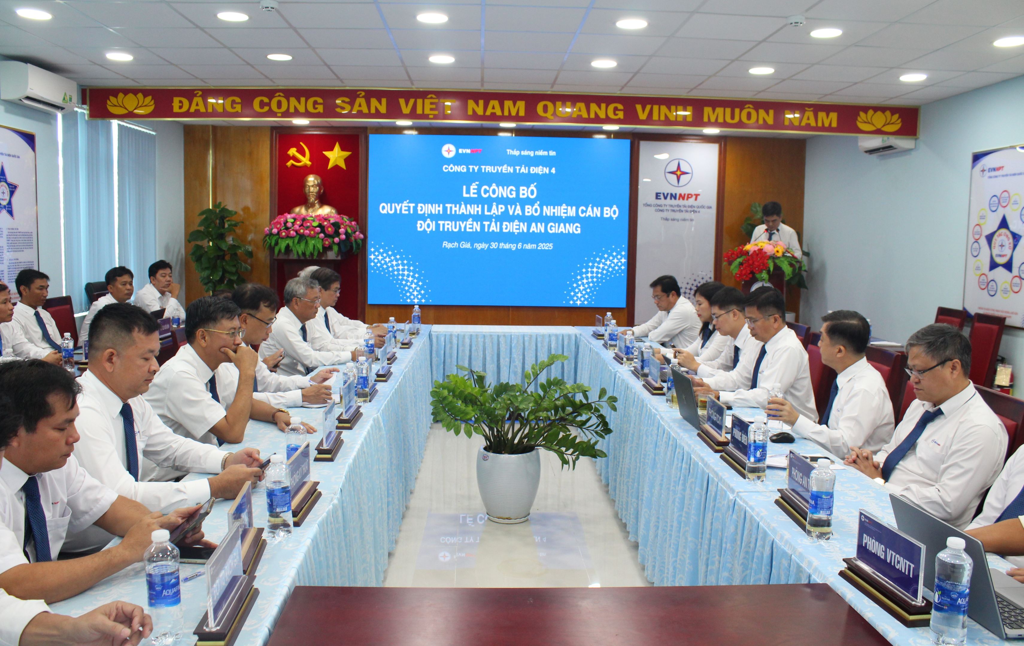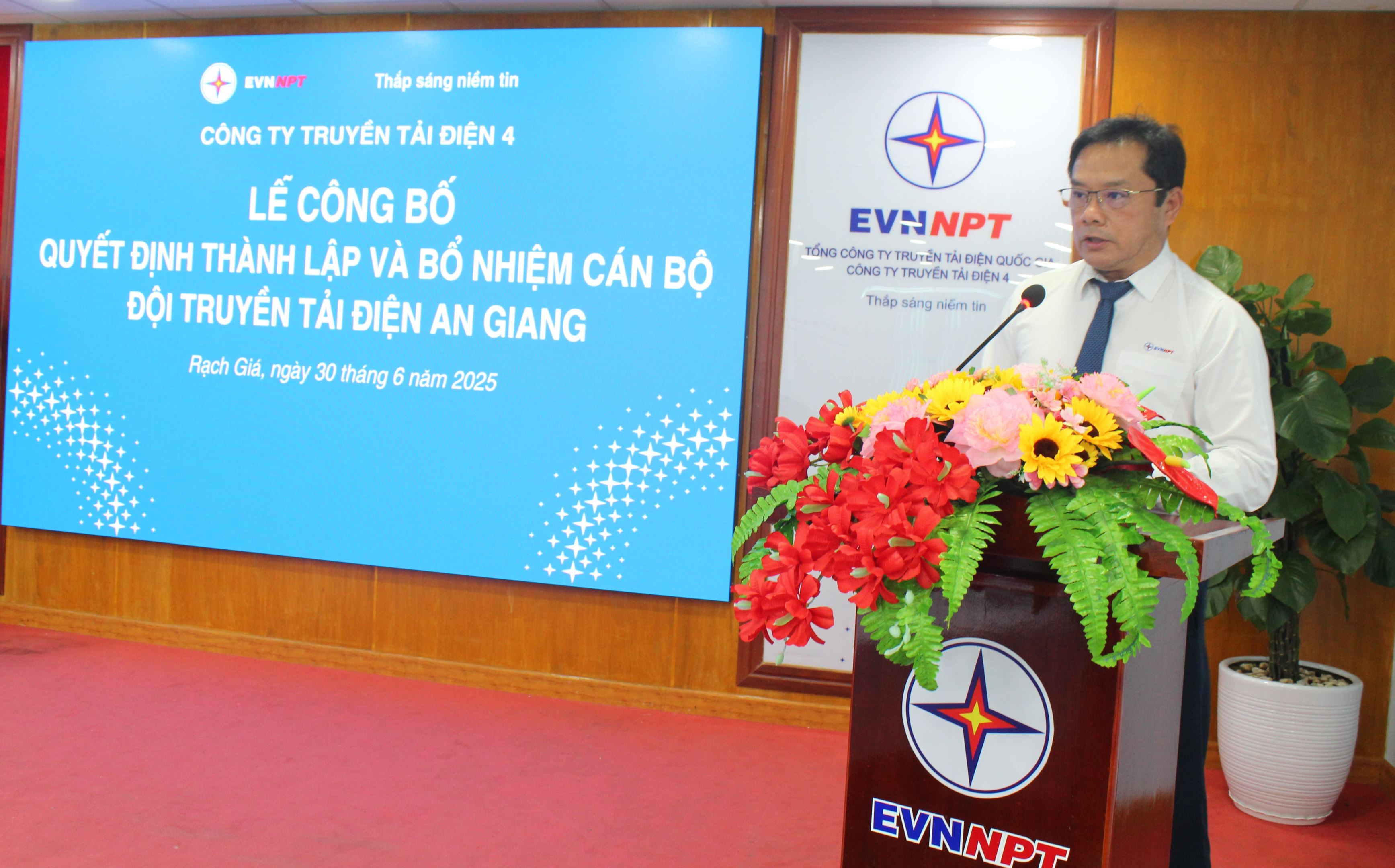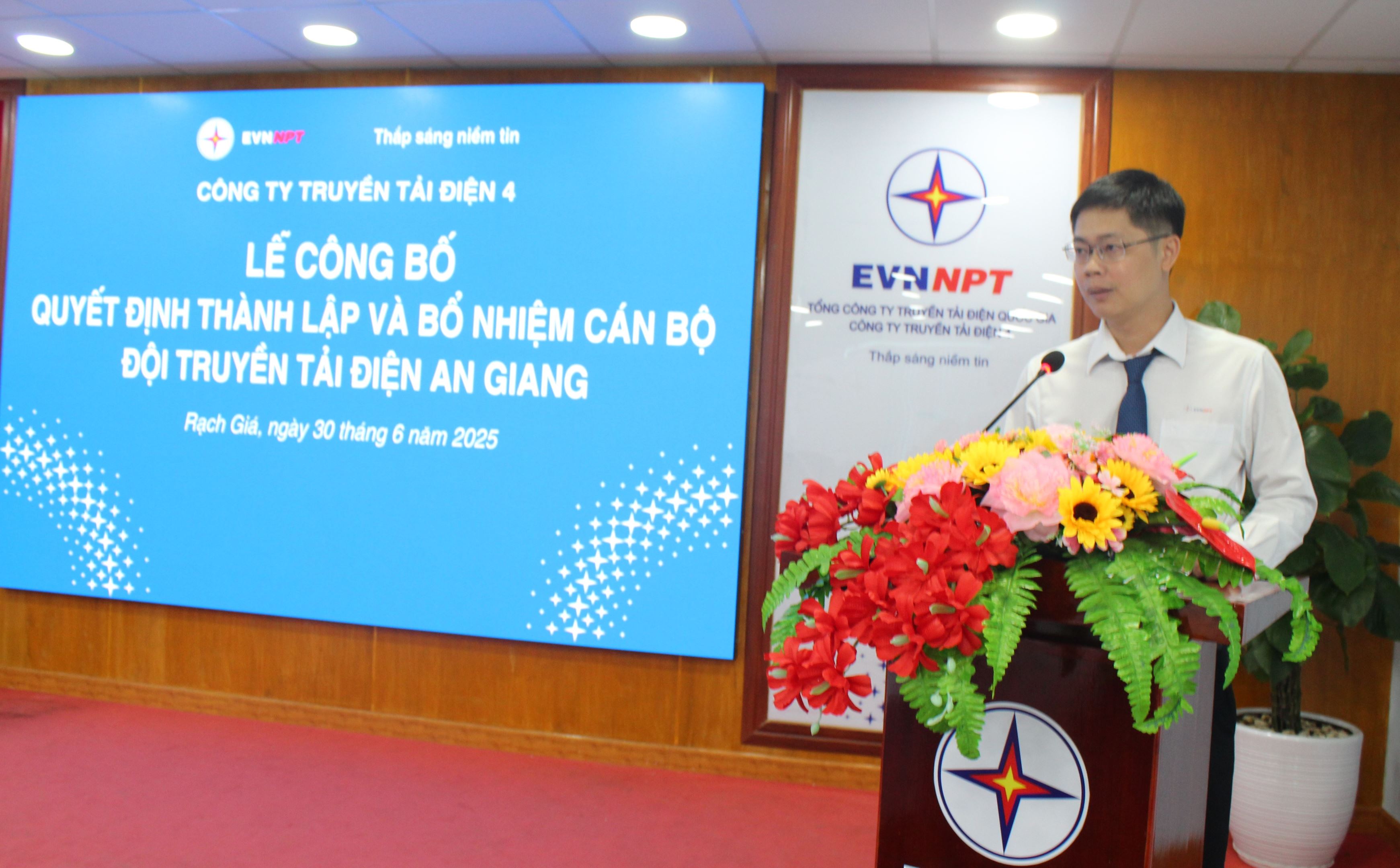 Tại buổi lễ, Công ty Truyền tải điện 4 đã công bố các Quyết định về chấm dứt hoạt động các Truyền tải điện; thành lập Đội Truyền tải điện An Giang và công tác cán bộ Đội Truyền tải điện An Giang. Theo đó, đồng chí Trần Quốc Hiệu được bổ nhiệm giữ chức vụ Đội trưởng, đồng chí Trần Minh Hiếu được bổ nhiệm giữ chức vụ Đội phó. Đội Truyền tải điện An Giang là đơn vị trực thuộc Công ty Truyền tải điện 4, có phạm vi quản lý vận hành lưới điện truyền tải trên địa bàn tỉnh An Giang. Để đảm bảo tổ chức bộ máy tinh gọn, hiệu quả, phù hợp với thực tiễn quản lý vận hành Đội Truyền tải điện An Giang, Công ty có quyết định thành lập 2 Tổ quản lý vận hành đường dây và 4 Tổ thao tác lưu động, Tổ quản lý vận hành trạm biến áp trực thuộc Đội.