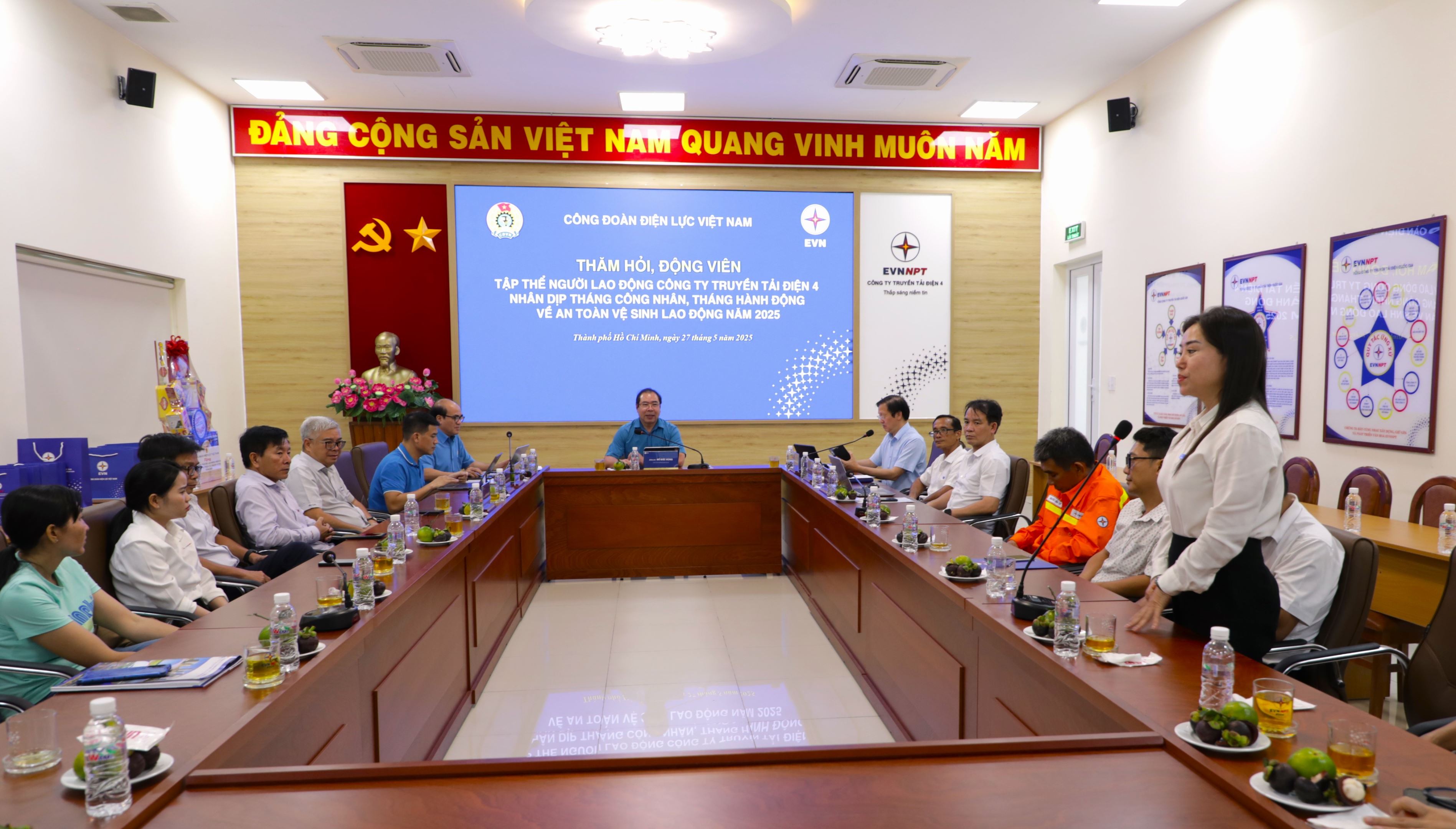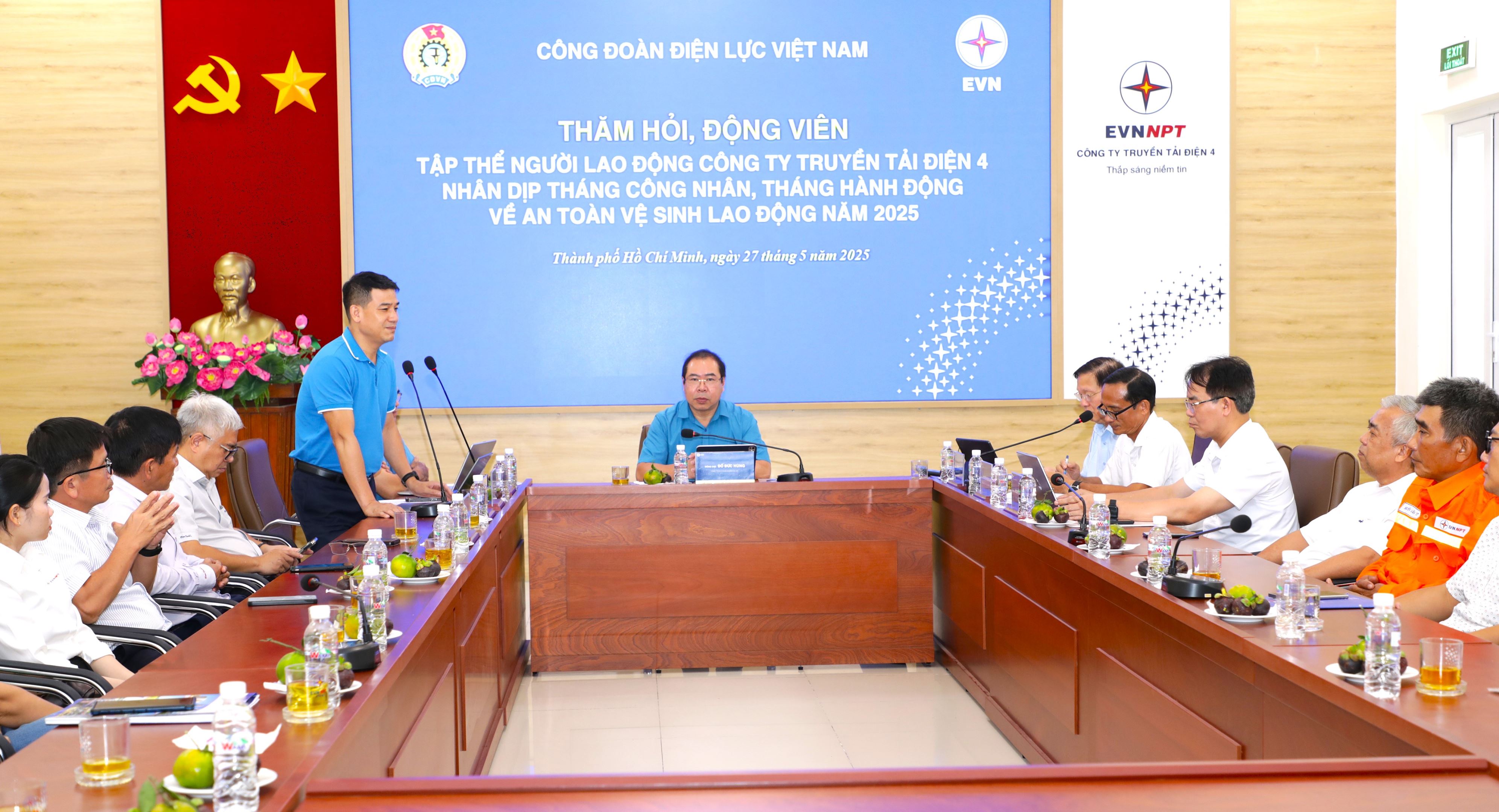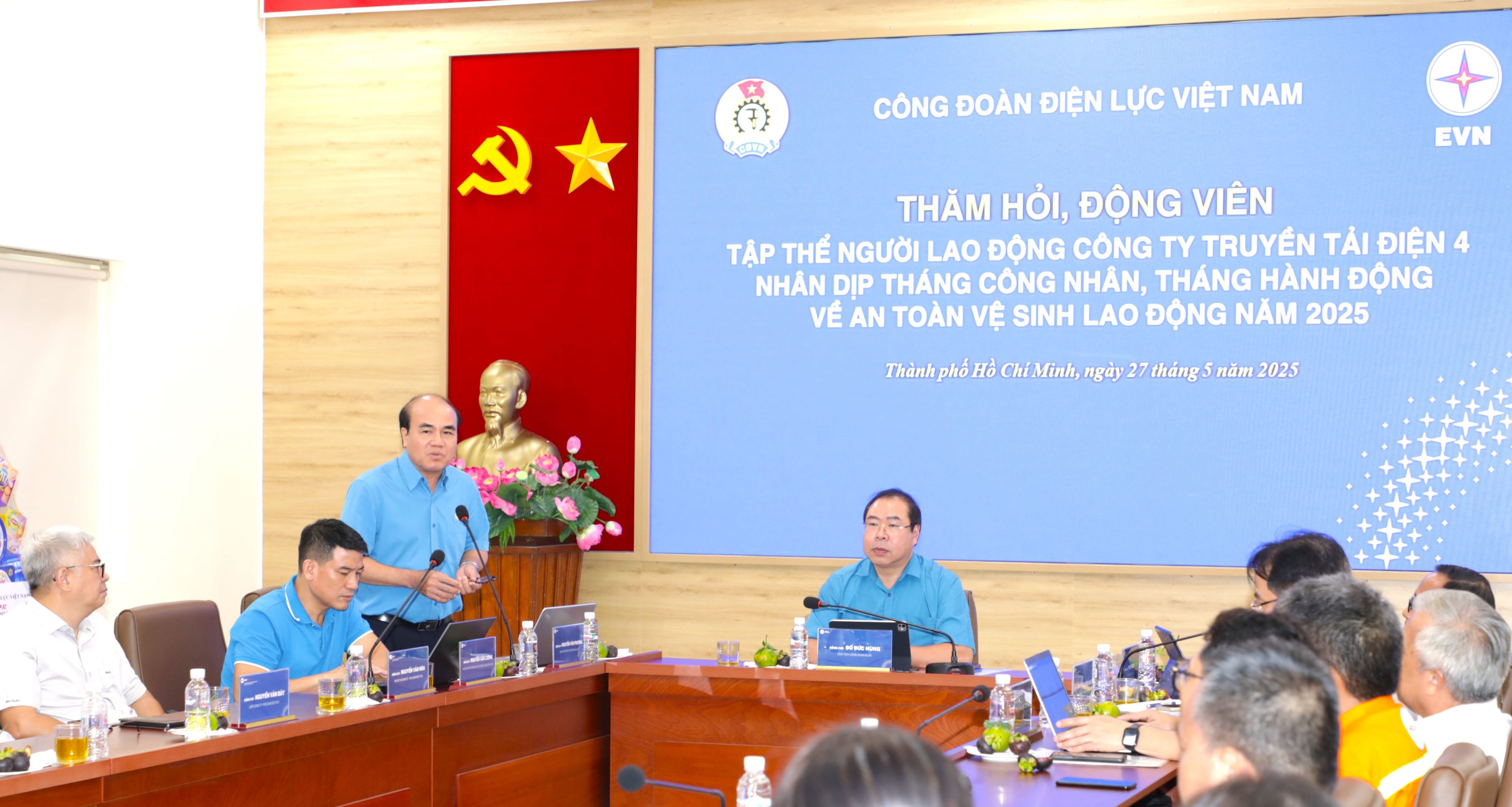 Thực hiện Kế hoạch số 117/KH-CĐĐVN ngày 21/3/2025 về việc tổ chức các hoạt động Tháng Công nhân năm 2025 và công văn số 338/CĐĐVN-VP ngày 23/5/2025 của Công đoàn Điện lực Việt Nam về thăm hỏi, động viên người lao động, ngày 27/5/2025, Công đoàn Điện lực Việt Nam đã đến thăm hỏi và động viên trực tiếp người lao động tại Công ty Truyền tải điện 4.
