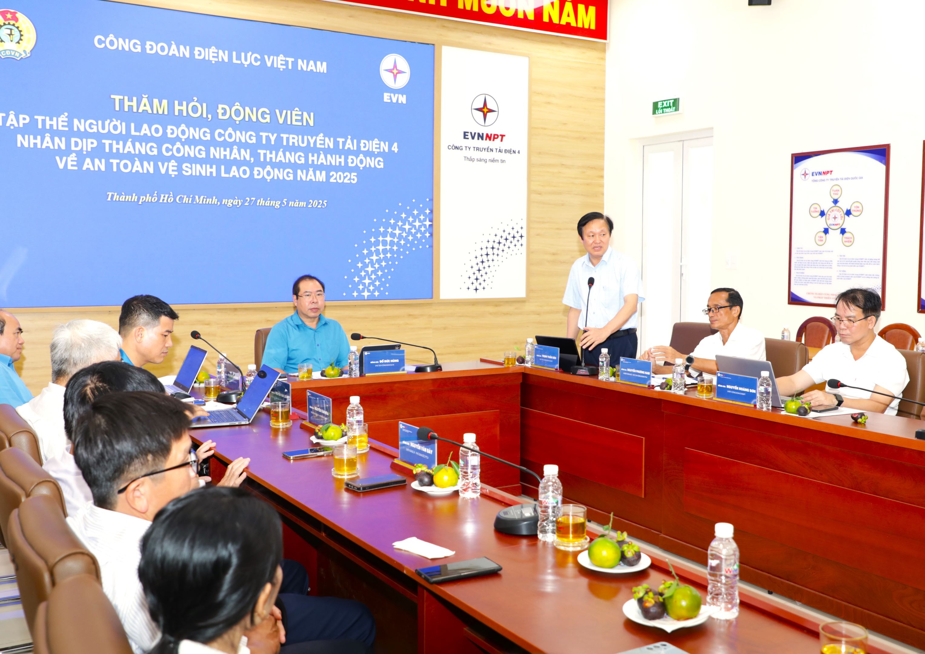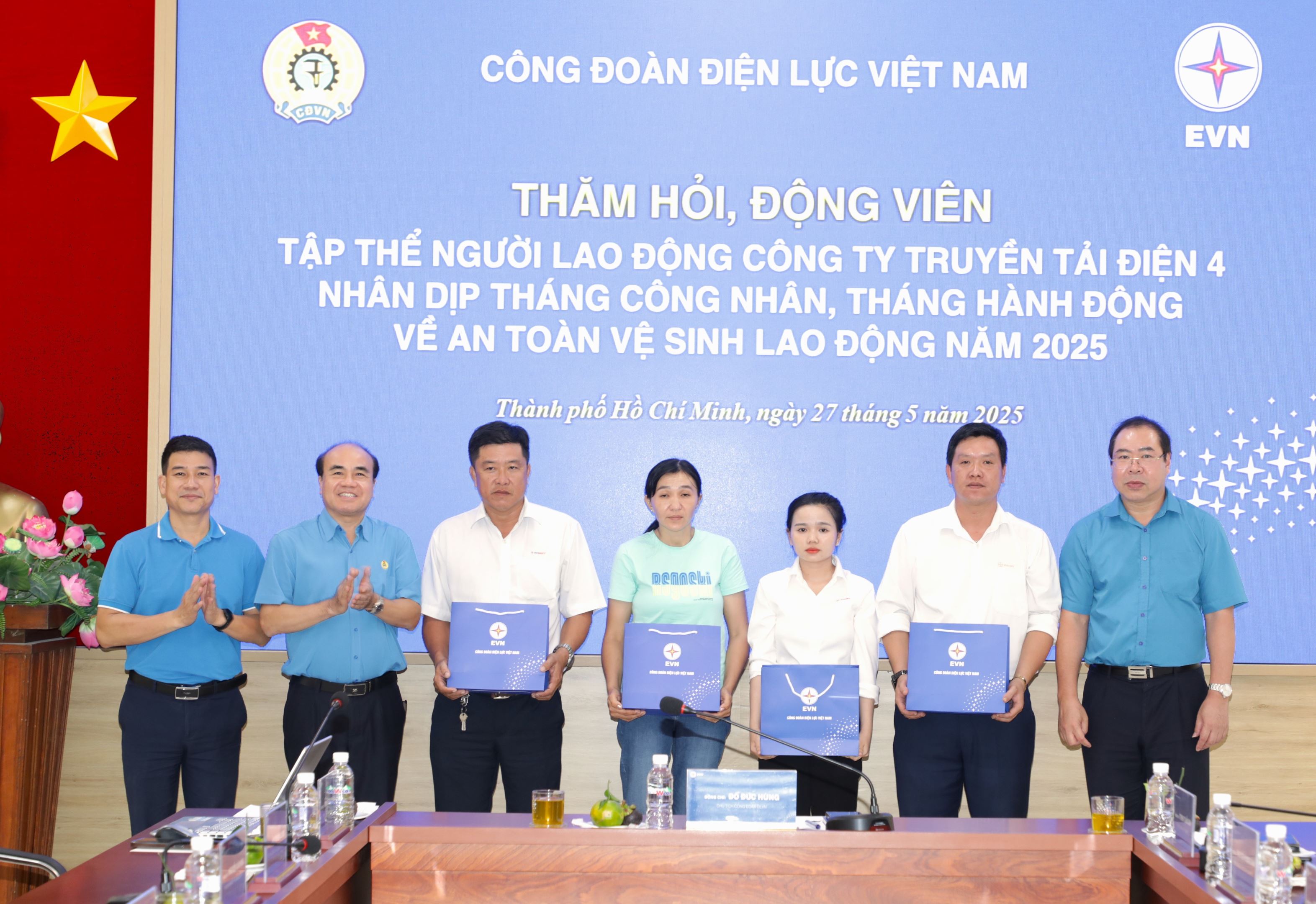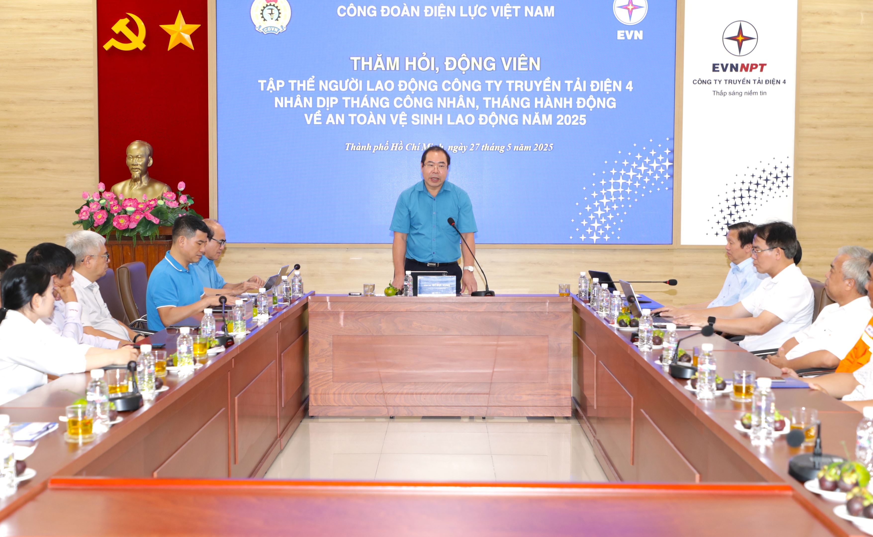 Thực hiện Kế hoạch số 117/KH-CĐĐVN ngày 21/3/2025 về việc tổ chức các hoạt động Tháng Công nhân năm 2025 và công văn số 338/CĐĐVN-VP ngày 23/5/2025 của Công đoàn Điện lực Việt Nam về thăm hỏi, động viên người lao động, ngày 27/5/2025, Công đoàn Điện lực Việt Nam đã đến thăm hỏi và động viên trực tiếp người lao động tại Công ty Truyền tải điện 4.