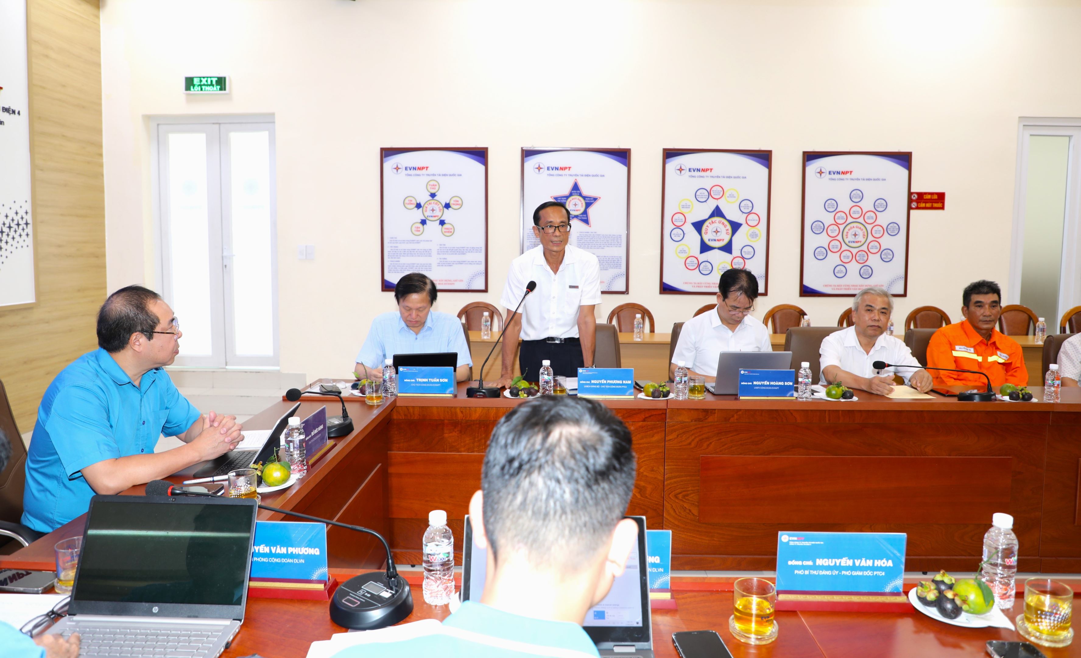 Ông Đỗ Đức Hùng, Chủ tịch Công đoàn Điện lực Việt Nam, trưởng đòan công tác trao đổi với Lãnh đạo PTC4 và người lao động