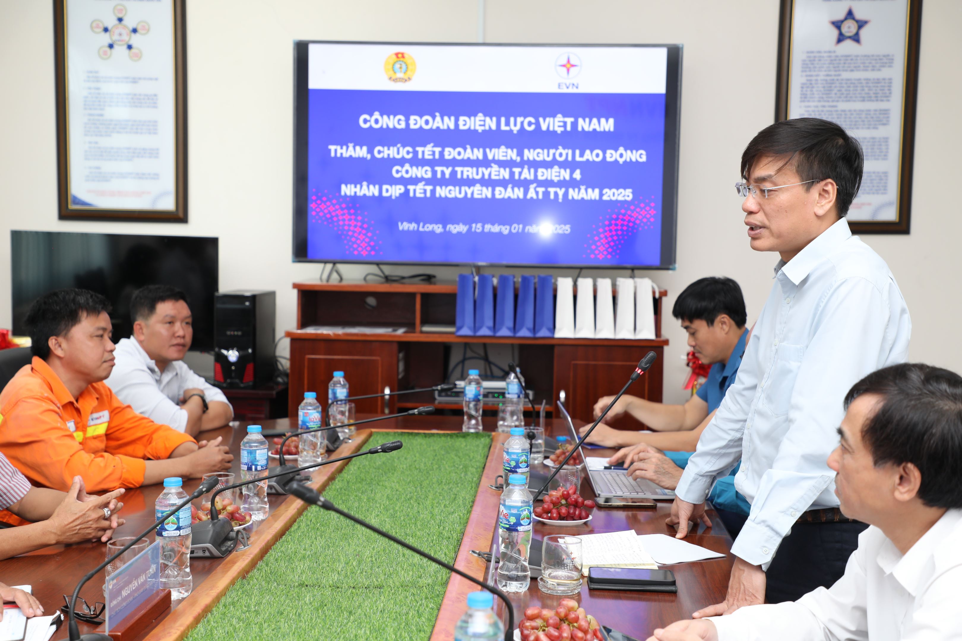 Trong dịp này, đ/c Nguyễn Huy Thắng, Phó Chủ tịch Công đoàn EVNNPT, thay mặt cho Lãnh đạo Công đoàn EVNNPT cũng đã đến thăm hỏi, động viên CNVCLĐ Truyền tải điện Thành phố Hồ Chí Minh, gặp gỡ CNVCLĐ Tổ Thao tác lưu động Long An, Đội Truyền tải điện Bình Chánh, Trạm biến áp 500kV Nhà Bè, Đội Truyền tải điện Phú Lâm và Trạm biến áp 220kV Hóc Môn; Công đoàn EVNNPT ghi nhận những tâm tư, nguyện vọng của CNVCLĐ và chỉ đạo Công đoàn các cấp quan tâm sâu sát đến công tác an toàn lao động, an toàn giao thông; vận động CNVCLĐ quyết tâm phấn đấu hoàn thành tốt nhiệm vụ được giao, góp phần quản lý vận hành lưới điện truyền tải an toàn liên tục. Đại diện Công đoàn ĐLVN và EVNNPT cũng không quên chúc mừng, biểu dương những thành tích của Tổ, Đội, Trạm, Đơn vị gặt hái được trong năm vừa qua và gửi lời chúc mừng năm mới mạnh khỏe, an toàn, an khang, thịnh vượng đến người lao động và gia đình nhân dịp Tết nguyên đán sắp đến.