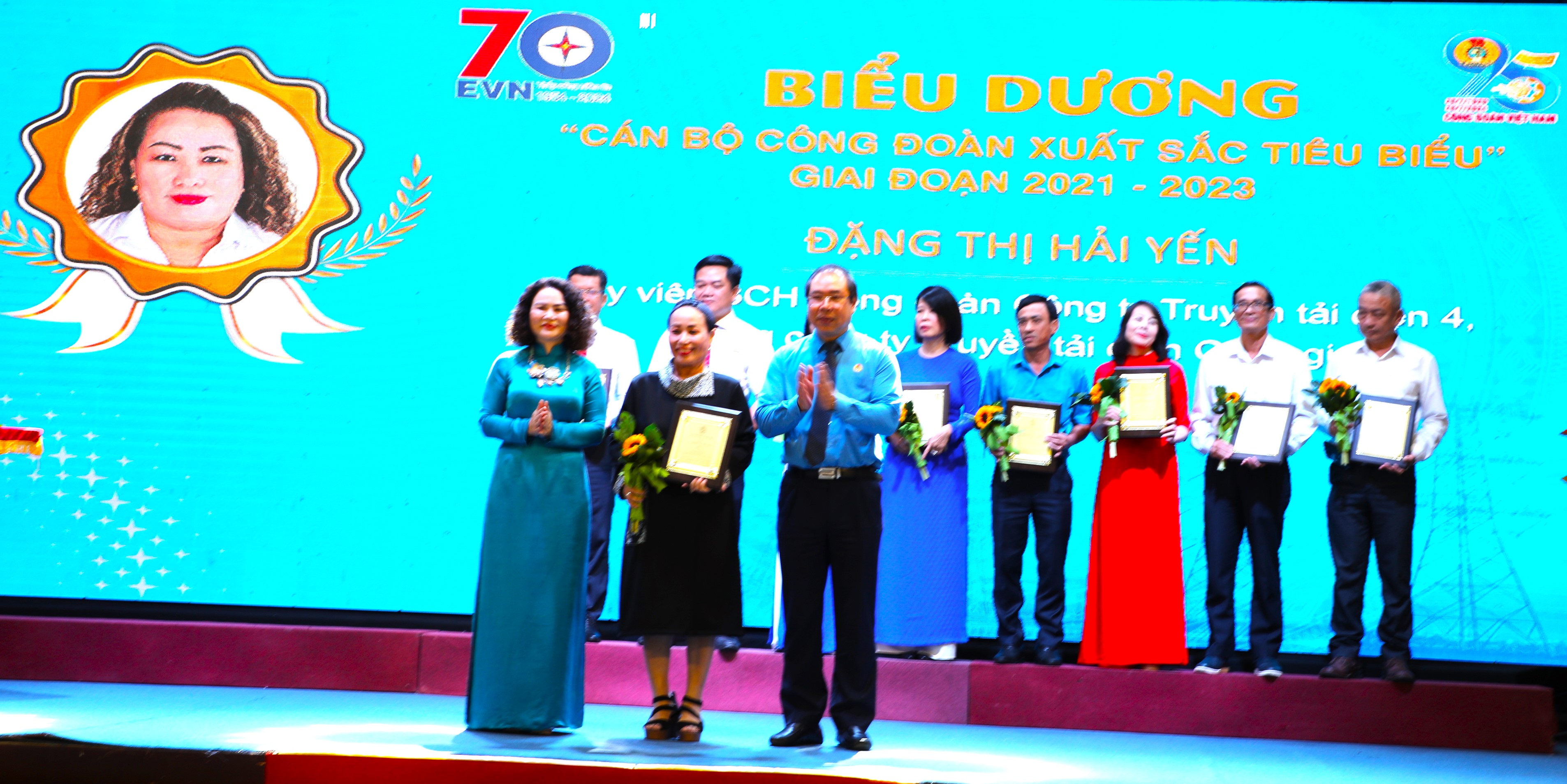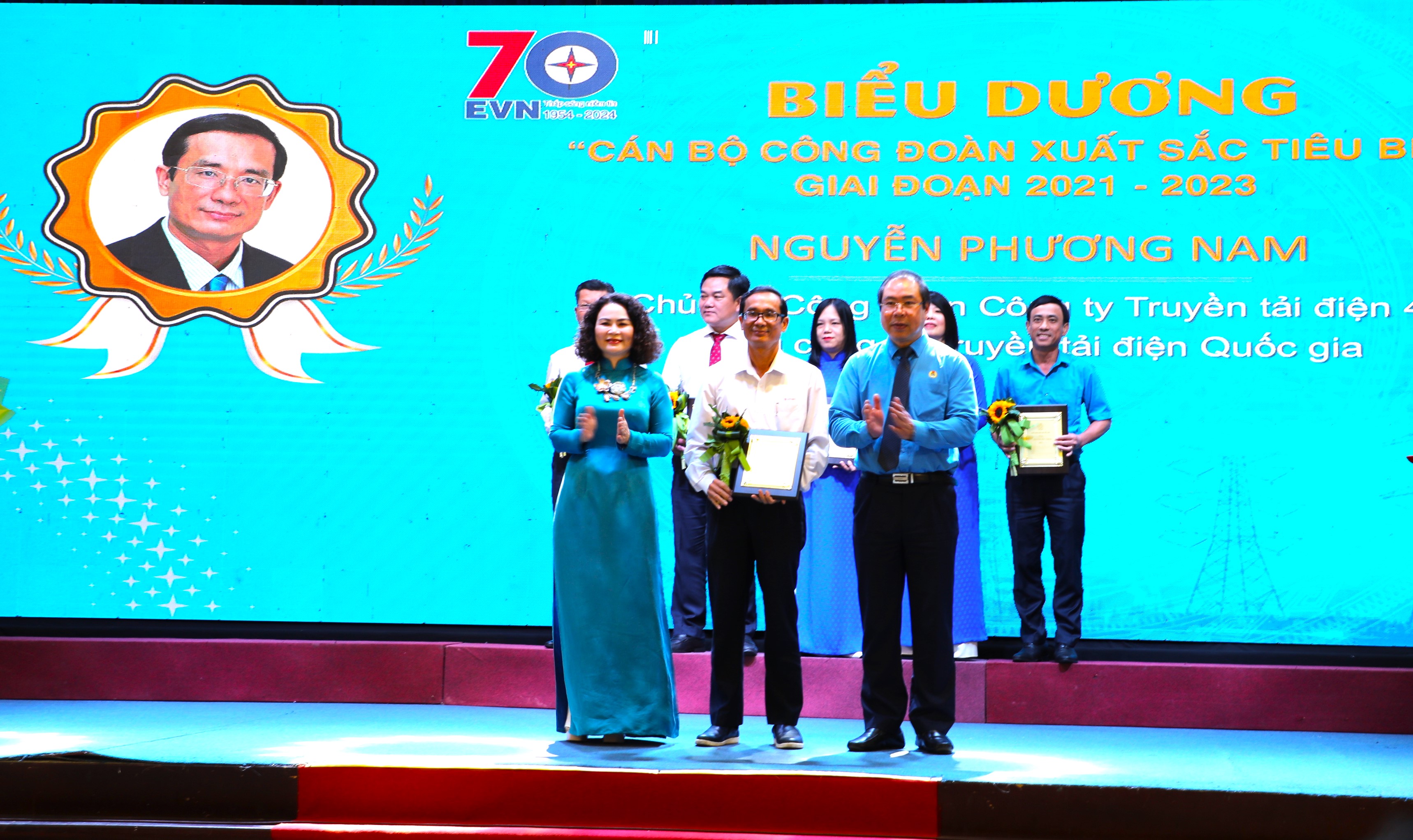 Trong 95 cán bộ Công đoàn xuất sắc tiêu biểu giai đoạn 2021 - 2023, Công đoàn Tổng công ty Truyền tải điện Quốc gia vinh dự có 7 Cán bộ công đoàn xuất sắc tiêu biểu được tôn vinh. Riêng Công đoàn Công ty Truyền tải điện 4 có 02 Cán bộ công đoàn là đồng chí Nguyễn Phương Nam, Chủ tịch Công đoàn và đồng chí Đặng Thị Hải Yến - Ủy viên Ban Chấp hành Công đoàn, Trưởng ban Nữ công Công ty.