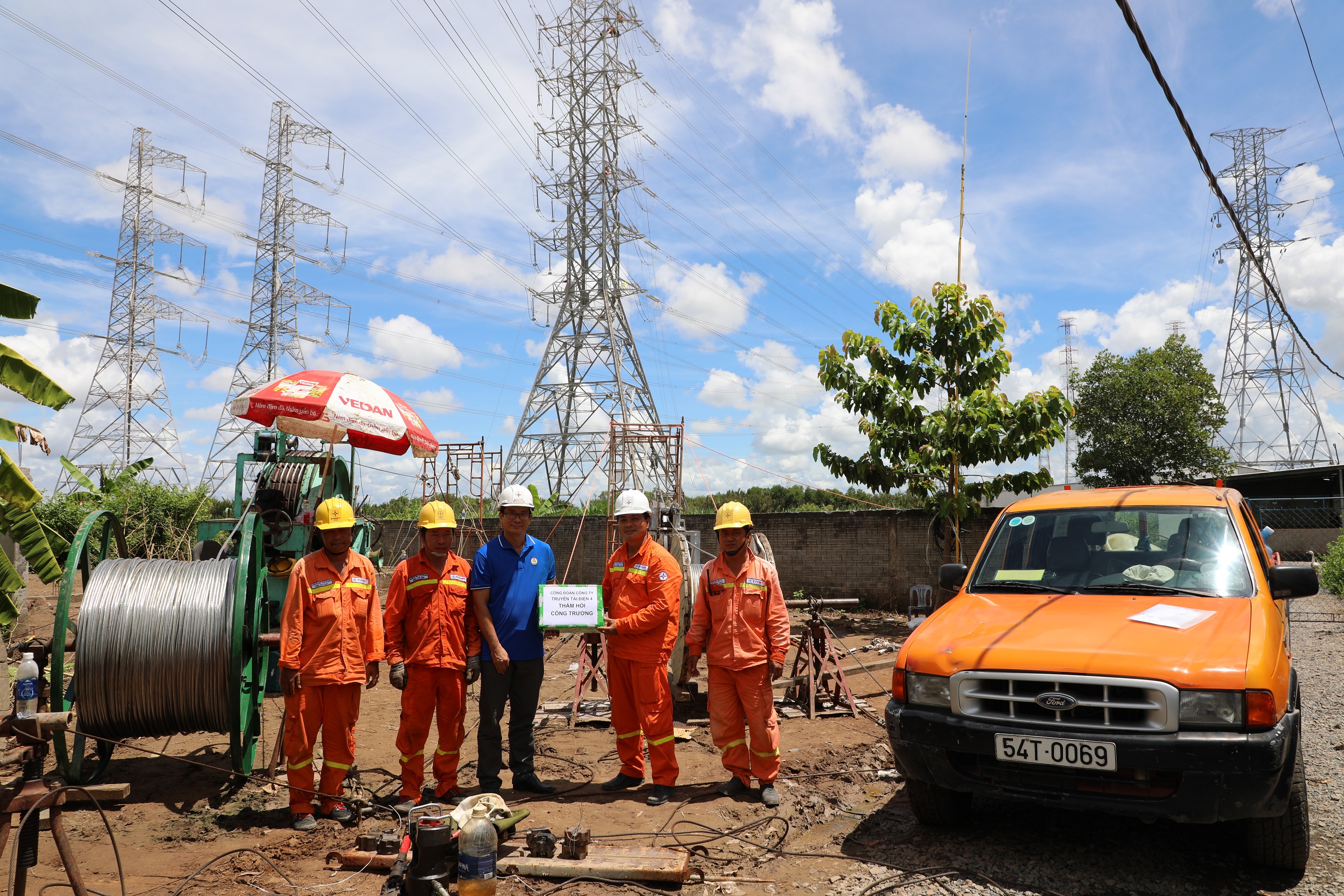 Đ/c Nguyễn Phương Nam, Chủ tịch Công đoàn Công ty thăm hỏi các Đội Truyền tải điện tham gia công trình.
