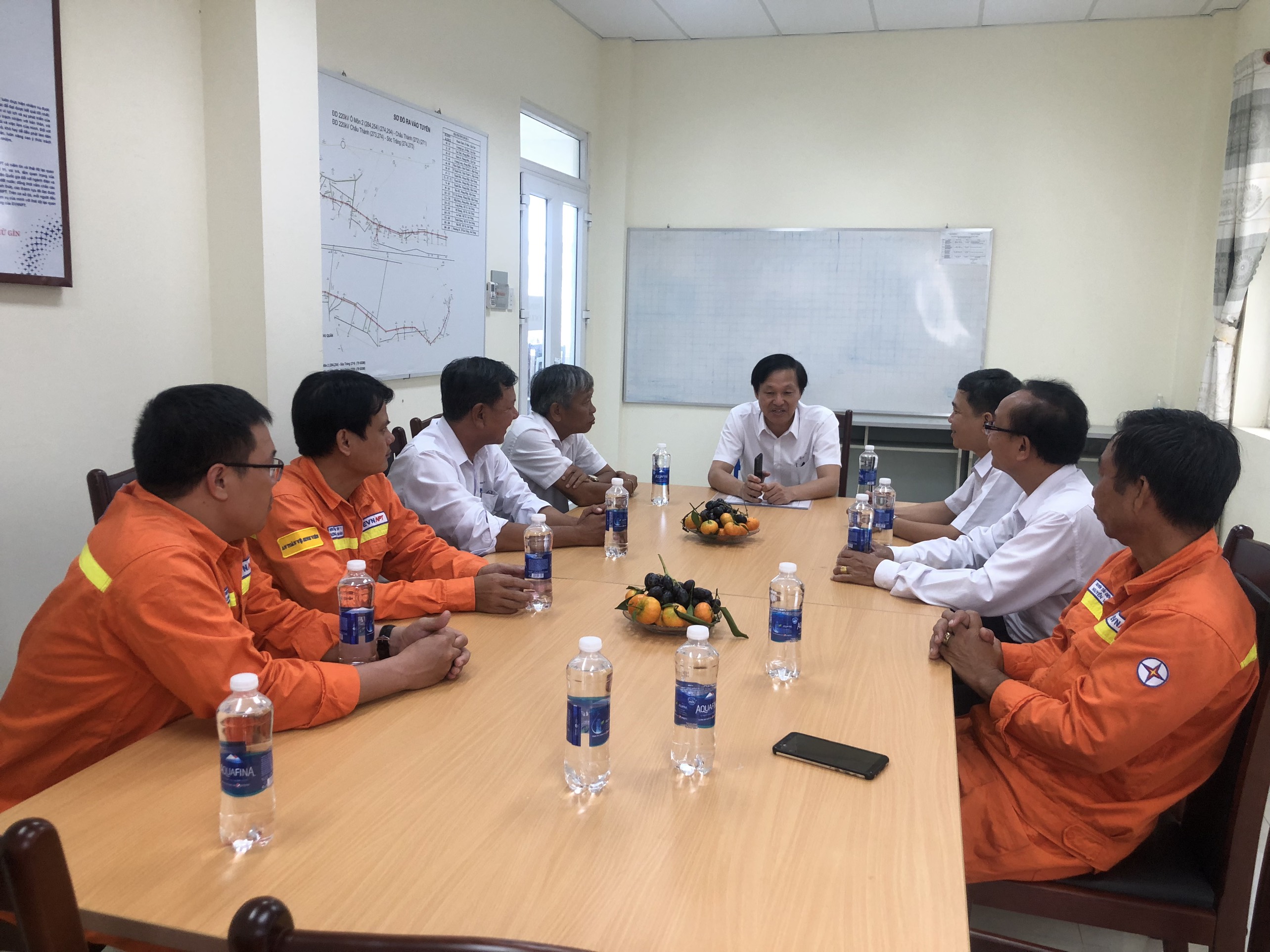 Ông Nguyễn Kỳ Toàn, Trưởng Trạm 220kV Trà Nóc báo cáo tình hình quản lý vận hành và đời sống người lao động tại trạm