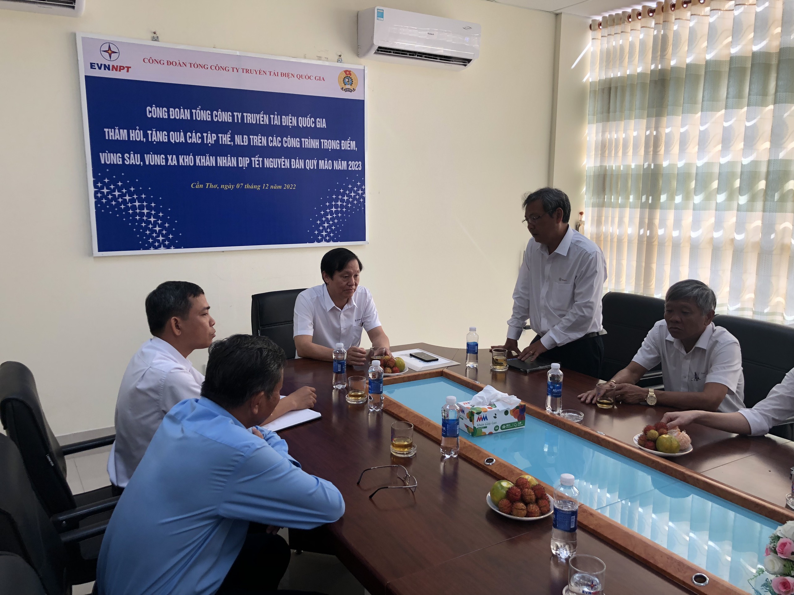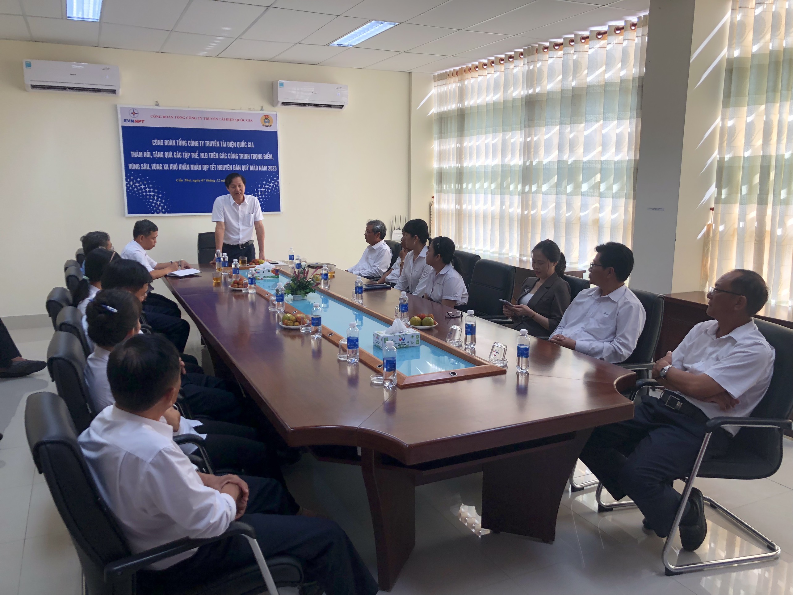 Chương trình thăm hỏi, tặng quà các tập thể, NLĐ có sự chủ trì của Ông Trịnh Tuấn Sơn, Chủ tịch Công đoàn EVNNPT; Tham dự chương trình có Ông Trần Quốc Hiệu, Giám đốc và Ông Trần Nhật Trung, Chủ tịch Công đoàn Truyền tải điện miền Tây 1 cùng các Ủy viên Ban Chấp hành Công đoàn, Tổ Trưởng Công đoàn, Trưởng các phòng nhiệp vụ, Trạm 220kV Trà Nóc, Đội Truyền tải điện Ninh Kiều và Đội Dịch vụ kỹ thuật miền Tây 1.