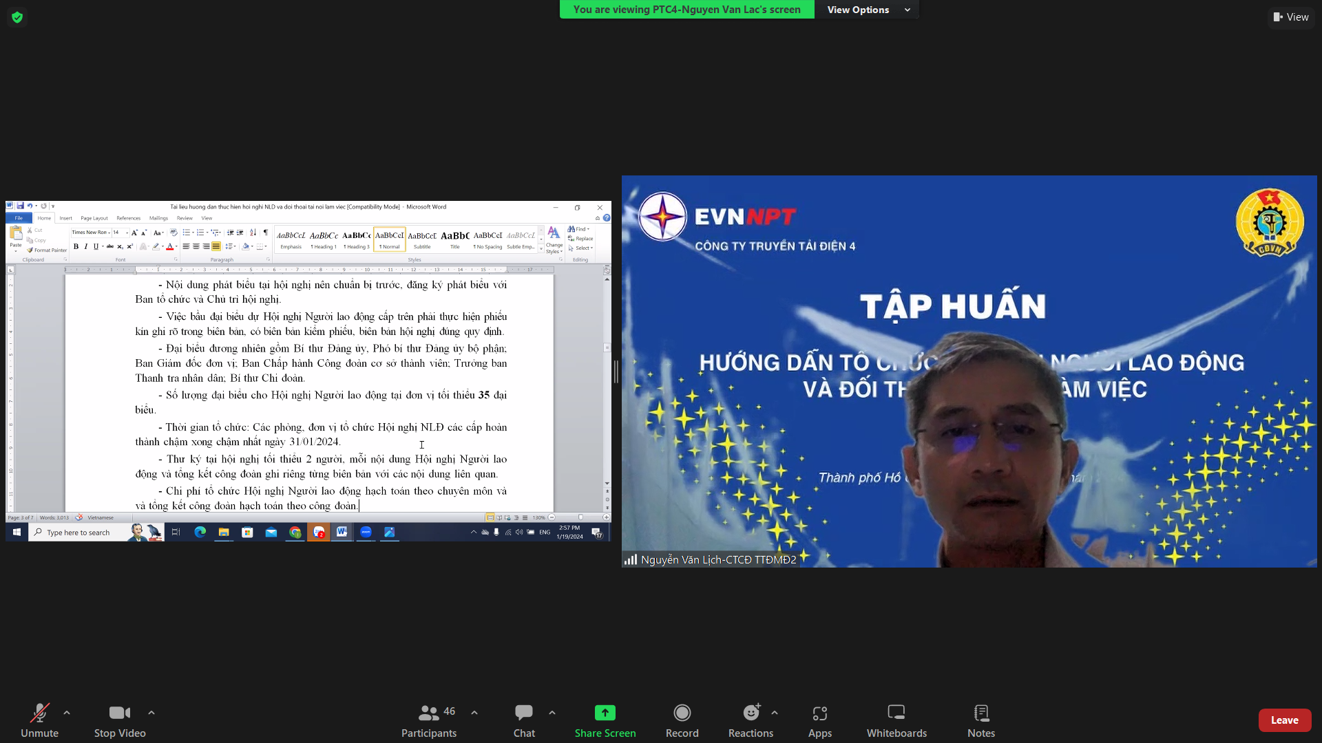 Đ/c Nguyễn Văn Lạc, UVBCH Công đoàn Công ty hướng dẫn cho cán bộ công đoàn những điểm mới khi tổ chức Hội nghị NLĐ và đối thoại tại đơn vị thuộc Công ty