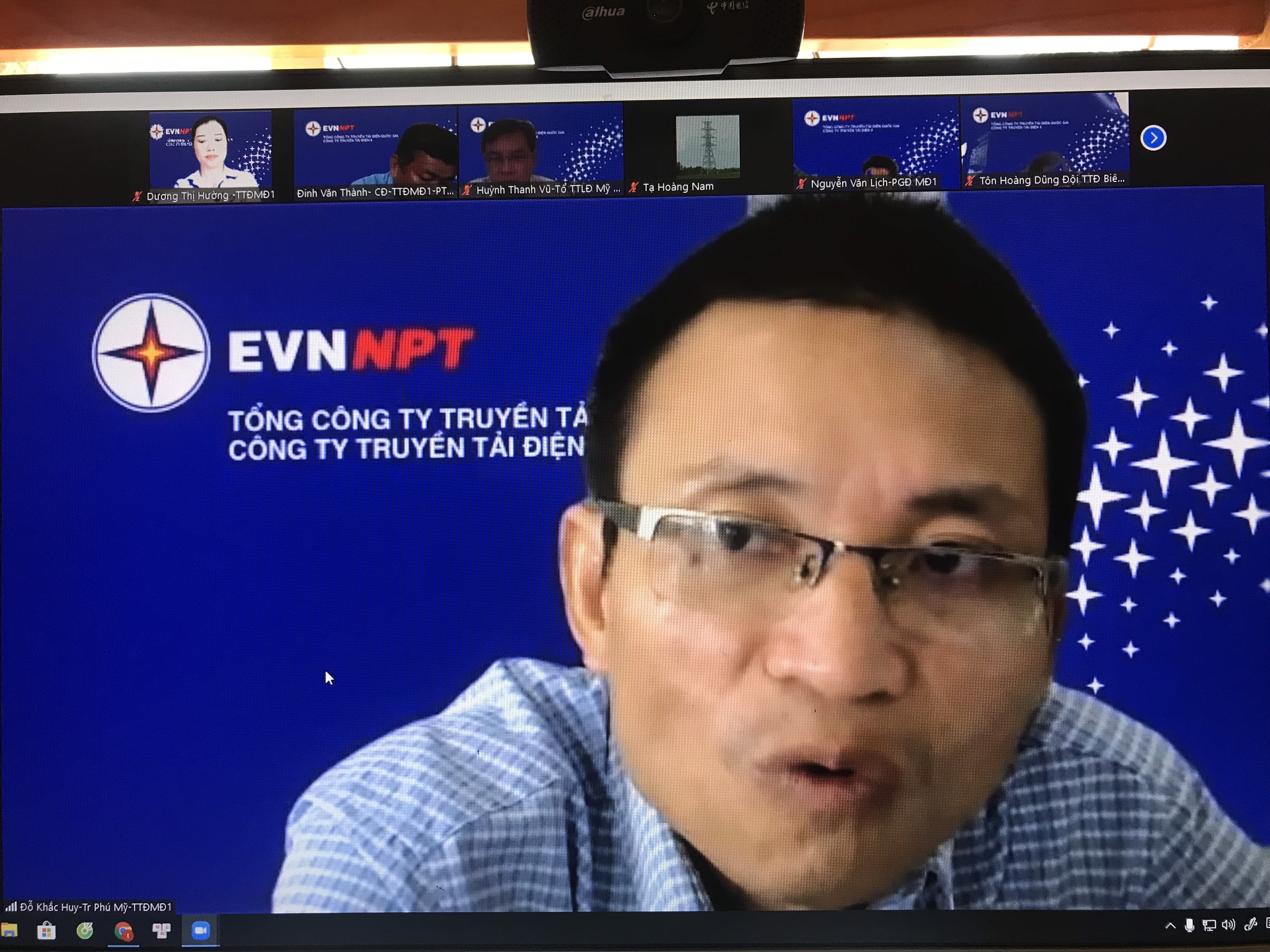 Ông Đỗ Khắc Huy –Tổ trưởng tổ an toàn Covid-19 Trạm 500kV Phú Mỹ trình bày về những biện pháp phòng chống áp dụng tại trạm từ bài học kinh nghiệm đơn vị bạn.
