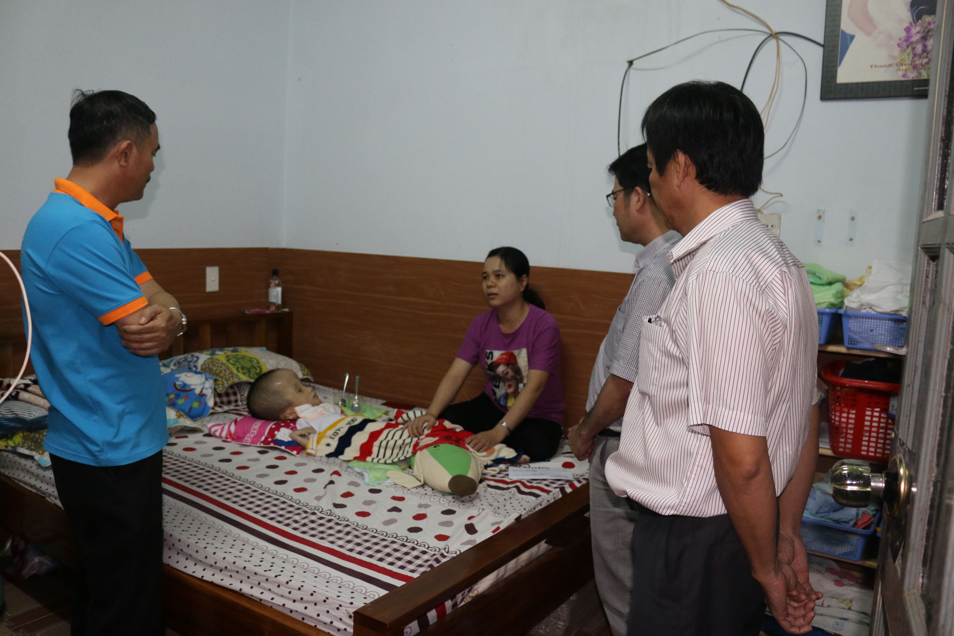 Đoàn công tác thăm hỏi tình hình sức khỏe cháu Nguyễn Anh Quân.