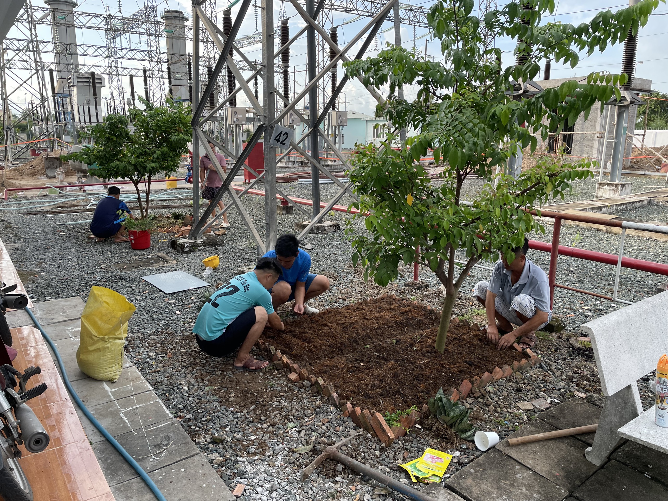 Các anh em các trạm tập trung chăm sóc, xới đất trồng tỉa gieo hạt giống và tưới nước.