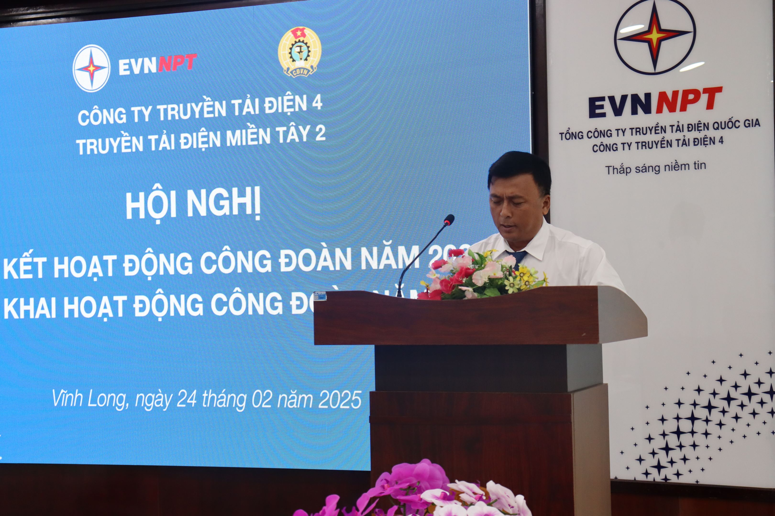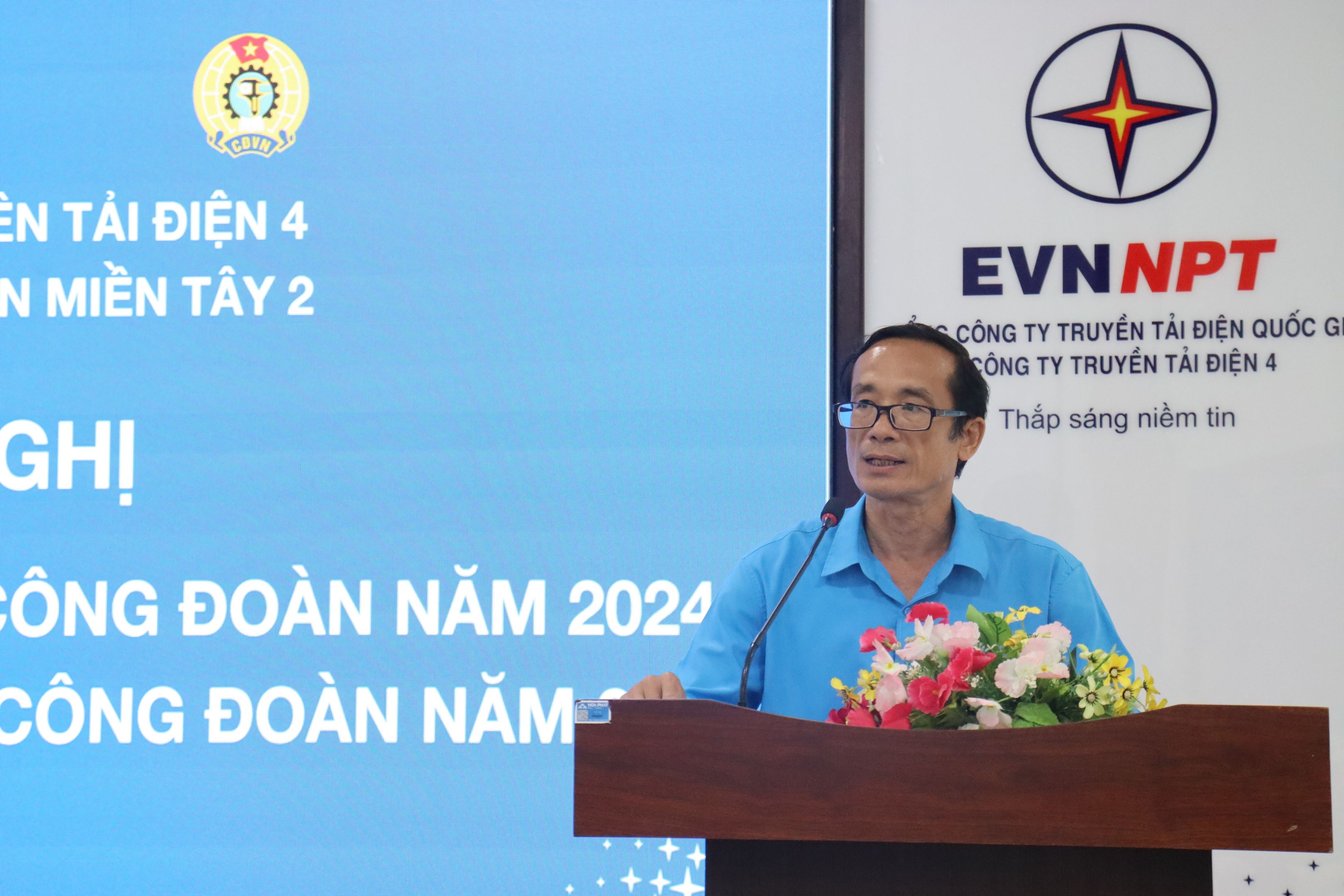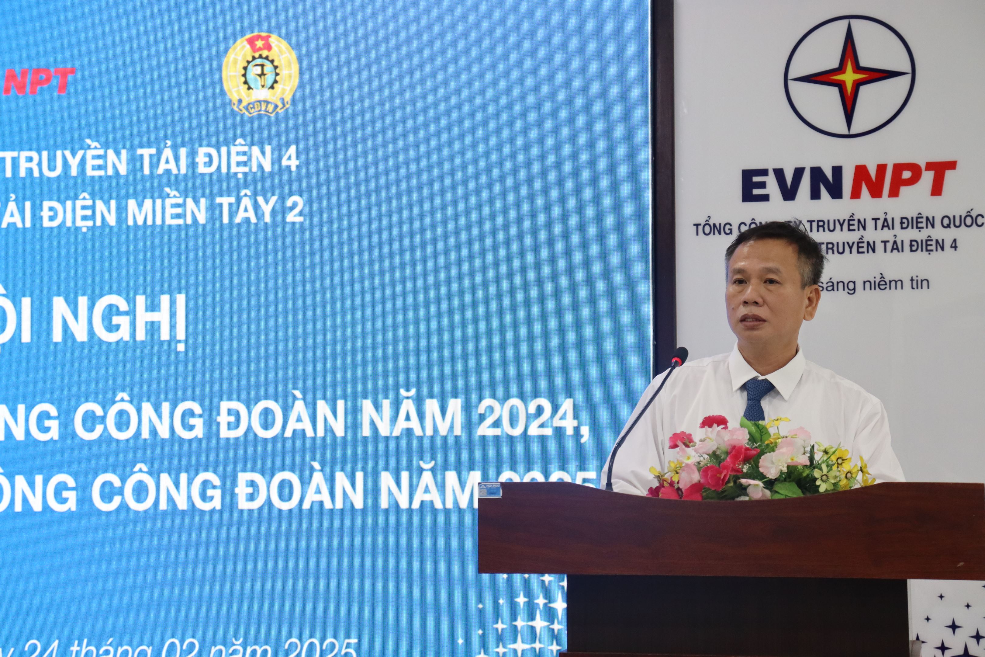 Phát biểu chỉ đạo tại hội nghị, ông Nguyễn Phương Nam - Chủ tịch Công đoàn Công ty Truyền tải điện 4 đánh giá cao nỗ lực của Công đoàn đơn vị, đã có nhiều thay đổi, nhiều cách làm hay, cách làm mới về tổ chức các hoạt động mang lại lợi ích cho người lao động, đặc biệt quan tâm đến sức khỏe, tiền lương, chế độ chính sách cho Người lao động,…Đồng thời, yêu cầu Công đoàn Truyền tải điện miền Tây 2 trong năm 2025, phát huy các điểm mạnh, bám sát theo kế hoạch chương trình đã đề ra, tập trung vào các nhiệm vụ trọng tâm, chú trọng phối hợp đẩy mạnh phong trào Xanh- Sạch- Đẹp, bảo đảm an toàn vệ sinh lao động, quản lý và chỉ đạo mạng lưới ATVSV hoạt động hiệu quả, đồng hành cùng người lao động ra sức phấn đấu để tiếp tục hoàn thành xuất sắc nhiệm vụ các cấp giao.