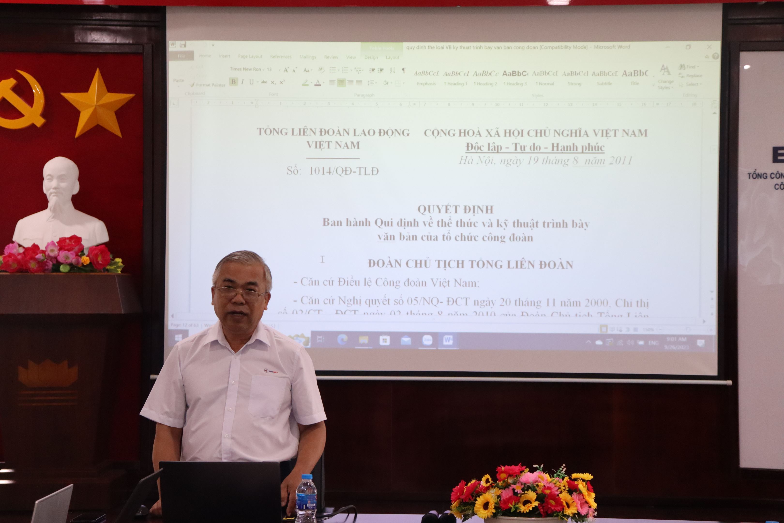 Ông Nguyễn Văn Lạc, Cán bộ Văn phòng Công đoàn PTC4 hướng dẫn buổi bồi huấn