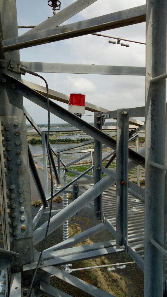 Lắp đèn chống chim trên Đường dây 220kV Rạch Giá – Kiên Bình.