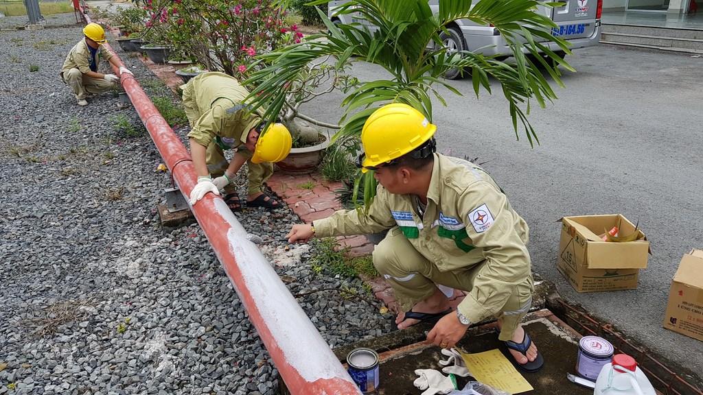 Với lực lượng tương đối mỏng, khoảng hơn 10 đoàn viên nhưng Chi đoàn Truyền tải điện miền Đông 1 vẫn tích cực nổ lực hoàn thành công trình trong vòng một ngày 16/8/2018. Quá trình thực hiện công tác tuân thủ theo đúng quy trình, từng bước vệ sinh bề mặt đường ống sử dụng cây xủi để cạo bỏ các vết sơn cũ, vết bẩn bám trên bề mặt ống, vệ sinh kỹ lại bằng giấy nhám và giẻ lau, dùng xăng để làm sạch các vết dầu mỡ, bụi bẩn. Sau đó tiến hành lăn một lớp sơn lót chống gỉ, chờ cho đến khi thật khô rắn thì tiếp tục lăn một lớp sơn phủ màu đỏ còn lại cho lớp sơn thật đều và bóng mịn. Hệ thống PCCC tại trạm sau khi được sơn hoàn thiện đem đến cho trạm 220kV Nhơn Trạch một diện mạo mới.