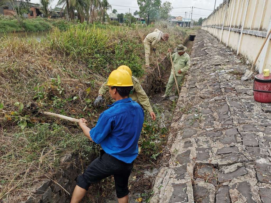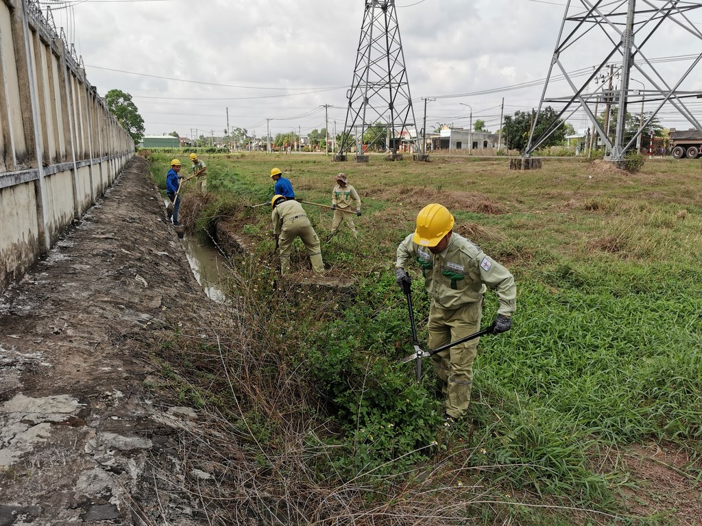 Thời tiết đã dần chuyển sang mùa mưa nên việc vệ sinh mương thoát nước khu vực xung quanh trạm 220kV Xuân Lộc giúp cho việc thoát nước được nhanh chóng tránh tình trạng gây ngập úng là một việc hết sức cần thiết. Khu vực mương thoát nước cần thực hiện vệ sinh khá dài khoảng 300 mét, lại có nhiều cây và cỏ dại bao quanh nên quá trình thực hiện mất nhiều công sức và thời gian để hoàn thành. Về cách thức thực hiện, Chi đoàn phân ra thành 02 nhóm, một nhóm thực hiện việc nhổ cỏ, cắt cỏ và chặt cây tạp dọc 02 bên bờ mương thoát nước, nhóm còn lại thực hiện việc nạo vét bùn và đất bị đọng lại dưới đáy của mương gây ảnh hưởng đến việc thoát nước.