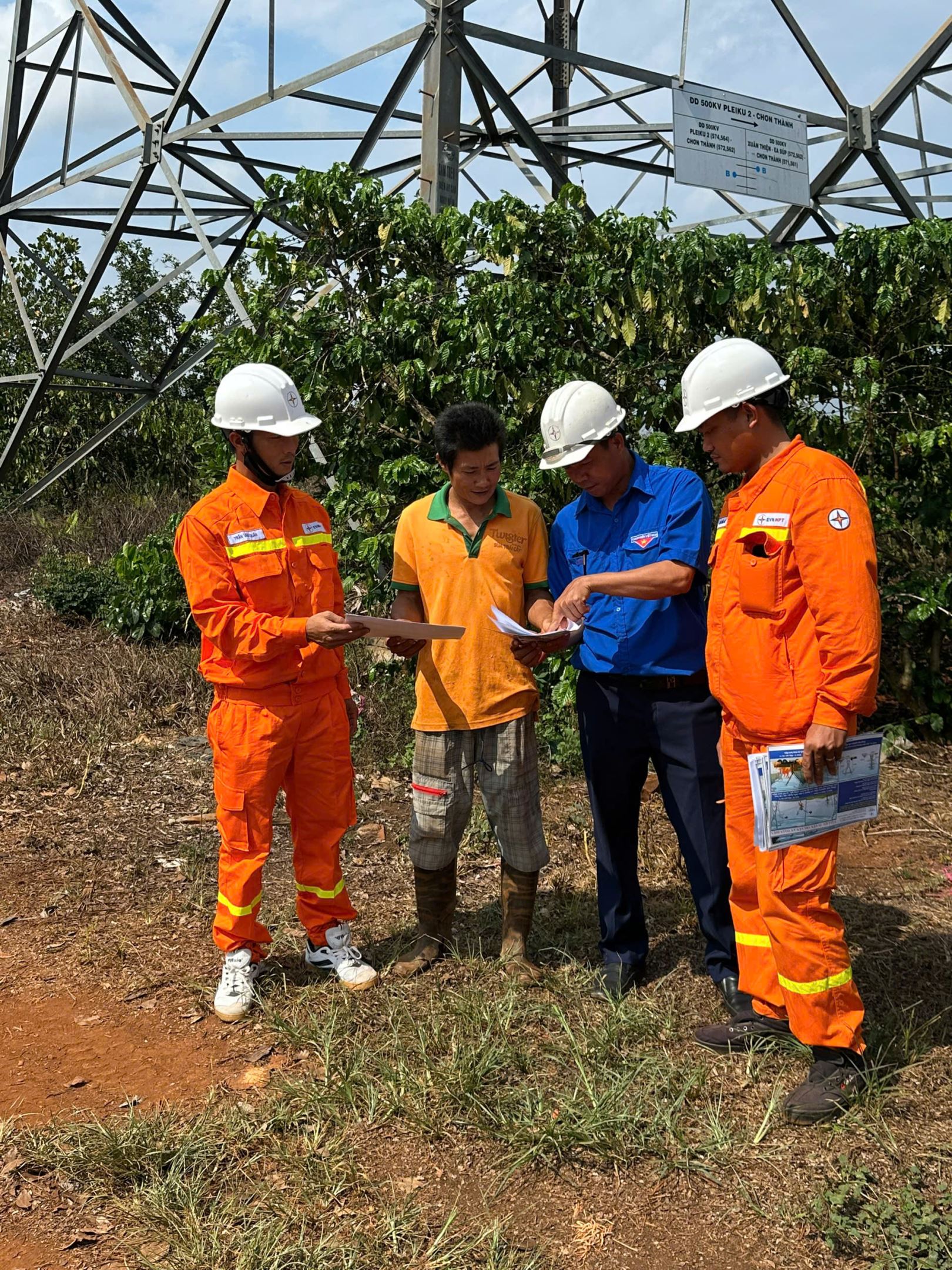 Đoàn tuyên truyền tại đoạn đường có khoảng cột 3083-3084 ĐDK 500kV Đắk Nông – Cầu Bông.