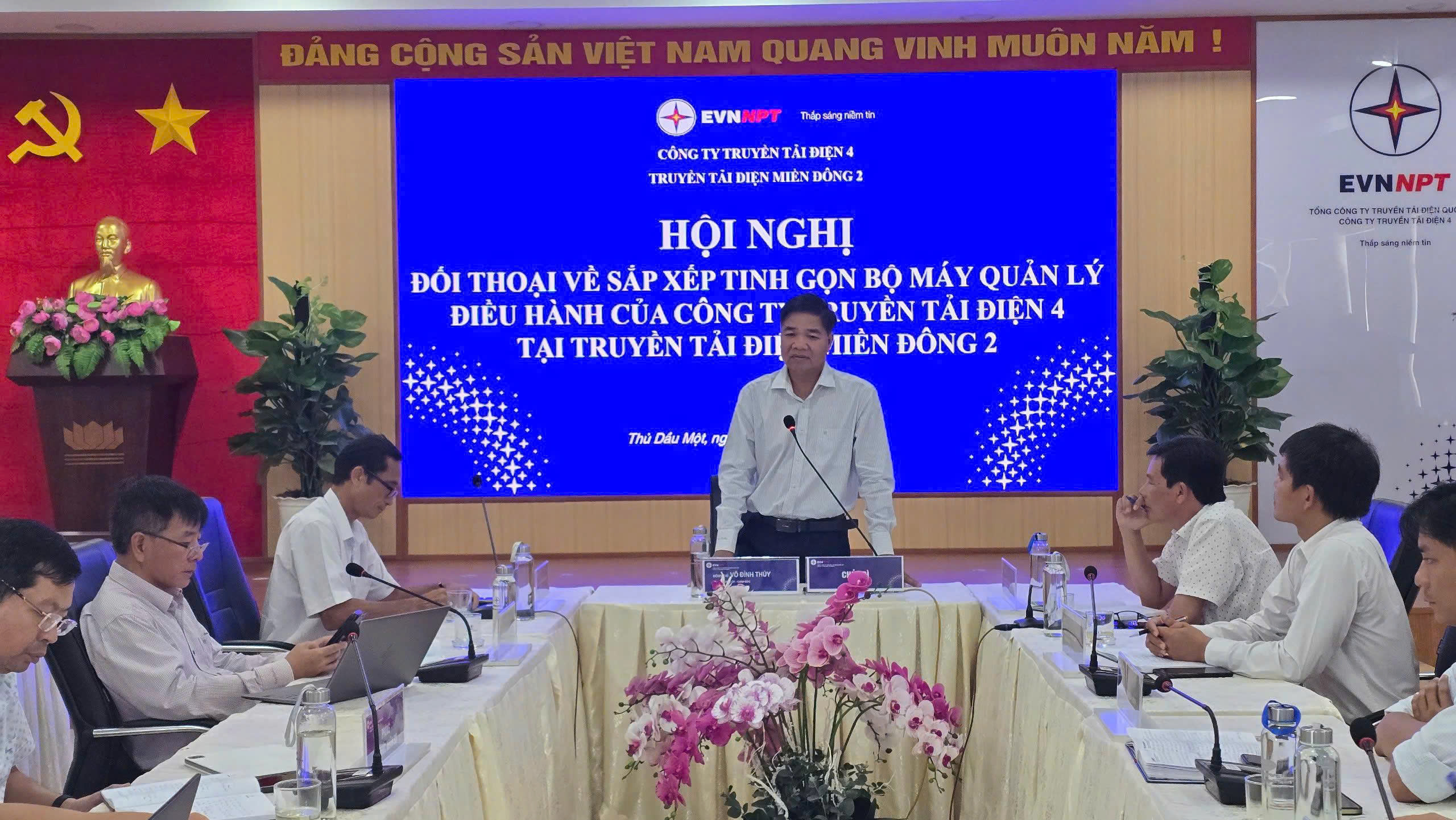 Một trong những điểm nhấn nổi bật trong năm 2025 là vai trò lãnh đạo, chỉ đạo quyết liệt của Đảng bộ PTC4 trong công tác tái cơ cấu, tinh gọn tổ chức bộ máy. Thực hiện chủ trương của EVNNPT, Công ty đã hoàn thành giai đoạn 1 sắp xếp tổ chức theo mô hình Tổng công ty 02 cấp, hướng tới quản trị tập trung, tinh gọn và hiệu quả.