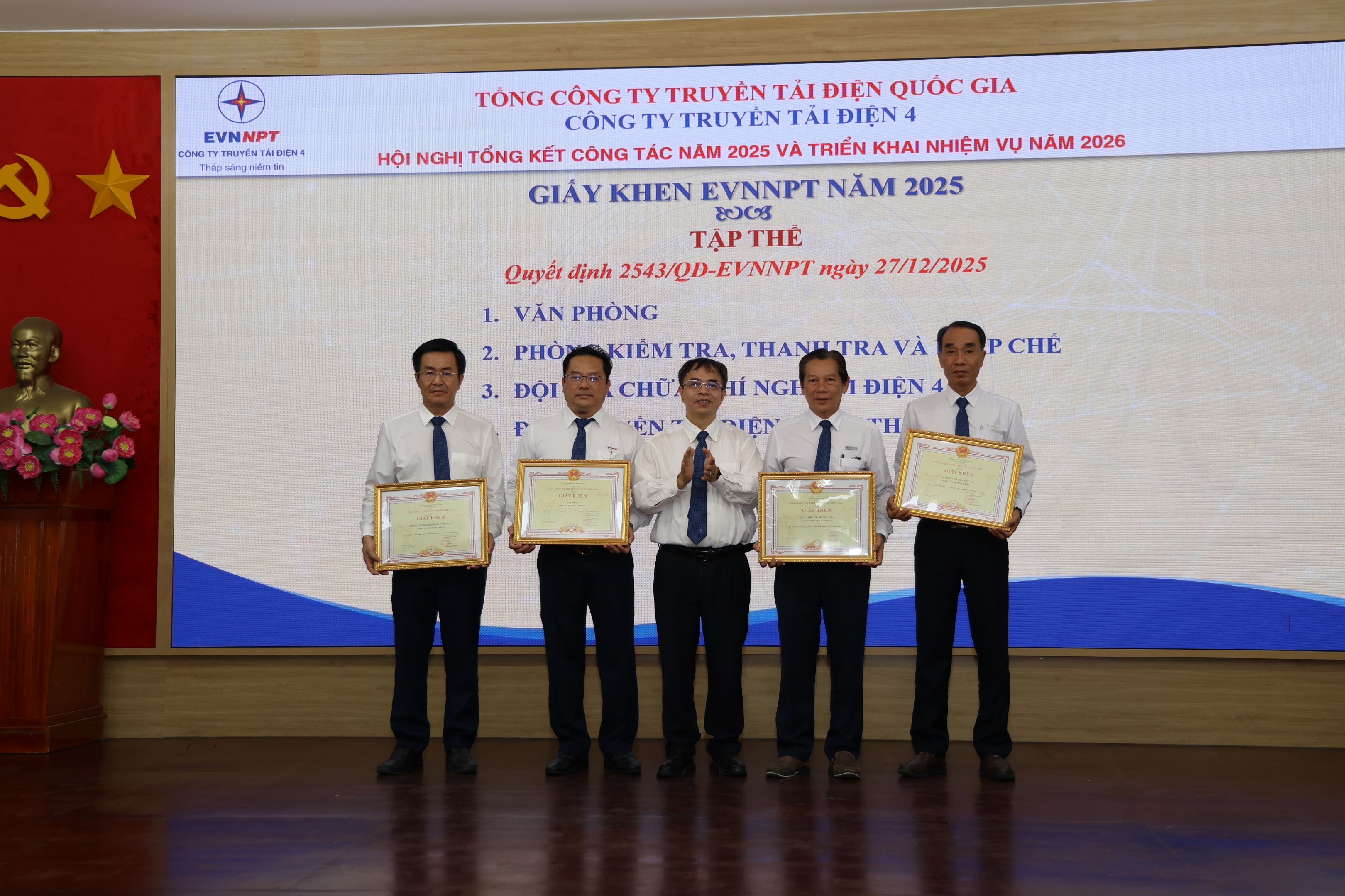 Những kết quả đạt được trong năm 2025 là minh chứng sinh động cho sự lãnh đạo toàn diện, hiệu quả của Đảng bộ Công ty Truyền tải điện 4, là nền tảng quan trọng để Công ty tiếp tục đổi mới quản trị, đẩy mạnh khoa học công nghệ, hoàn thiện mô hình tổ chức tinh gọn, nâng cao hiệu quả sản xuất kinh doanh, góp phần bảo đảm vững chắc an ninh năng lượng quốc gia.