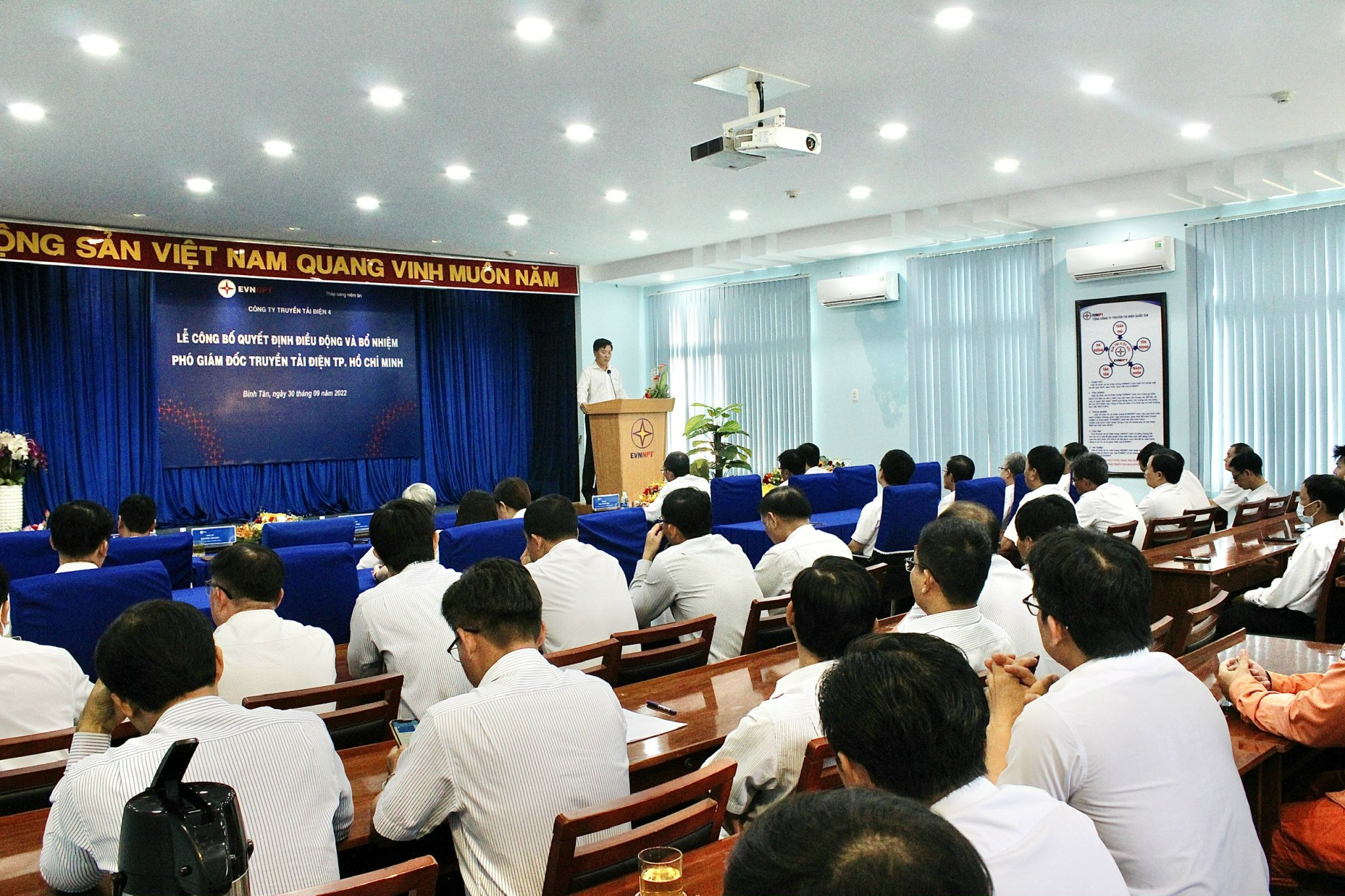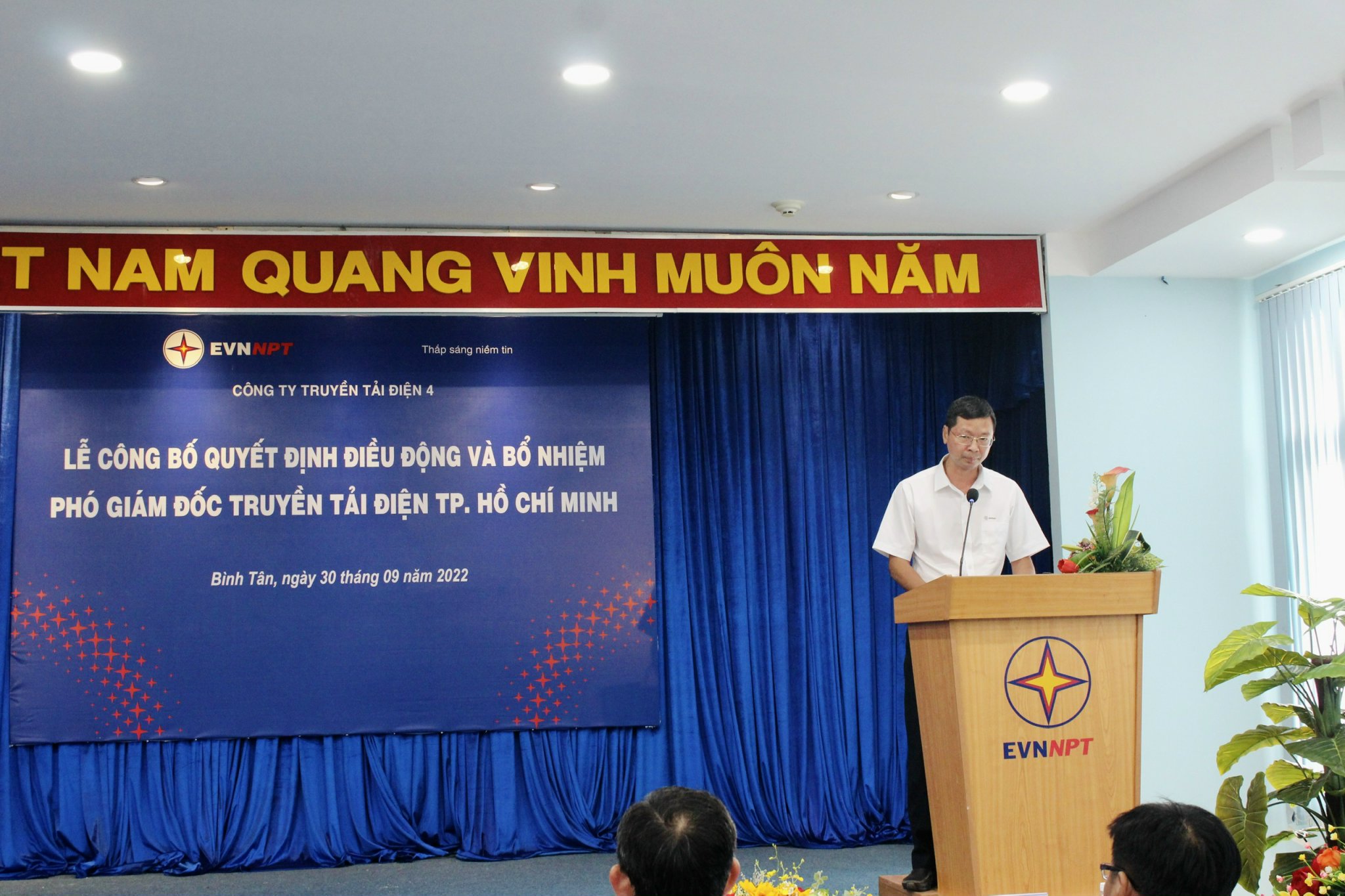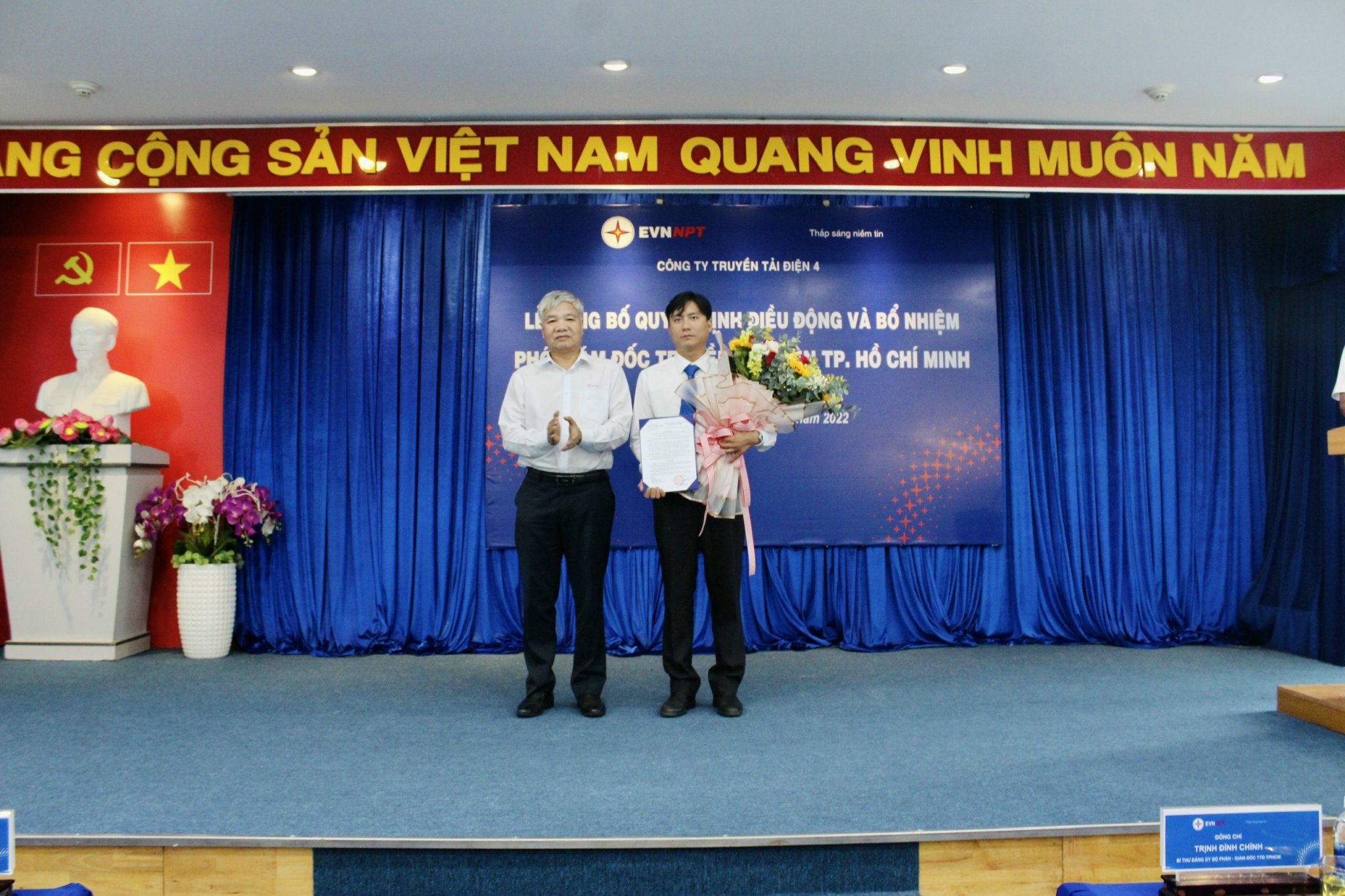 Tại buổi Lễ, ông Đống Tiến Long – Trưởng phòng TCNS PTC4 công bố quyết định số 6868/QĐ-PTC4 ngày 28/9/2022 của giám đốc PTC4 về việc bổ nhiệm ông Nguyễn Xuân Bình – Phó trưởng Phòng Vật tư Công ty giữ chức vụ Phó Giám đốc TTĐHCM kể từ ngày 01/10/2022, thời gian giữ chức vụ là 05 năm.