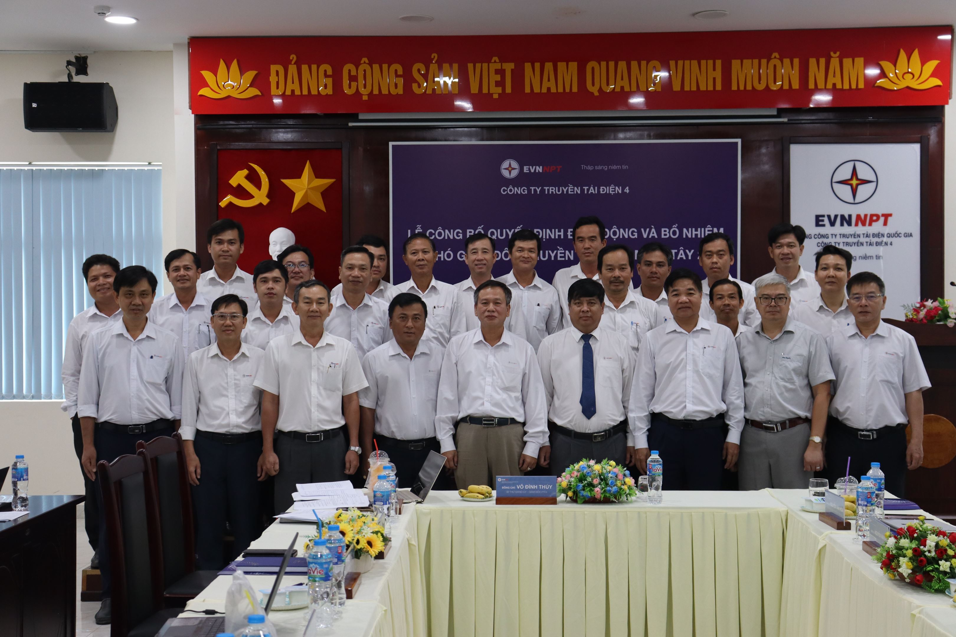 Ông Trần Anh Dũng - Tân Phó Giám đốc Truyền tải điện Miền Tây 2 chụp ảnh lưu niệm với Ban Giám đốc Công ty và các đại biểu tham dự.