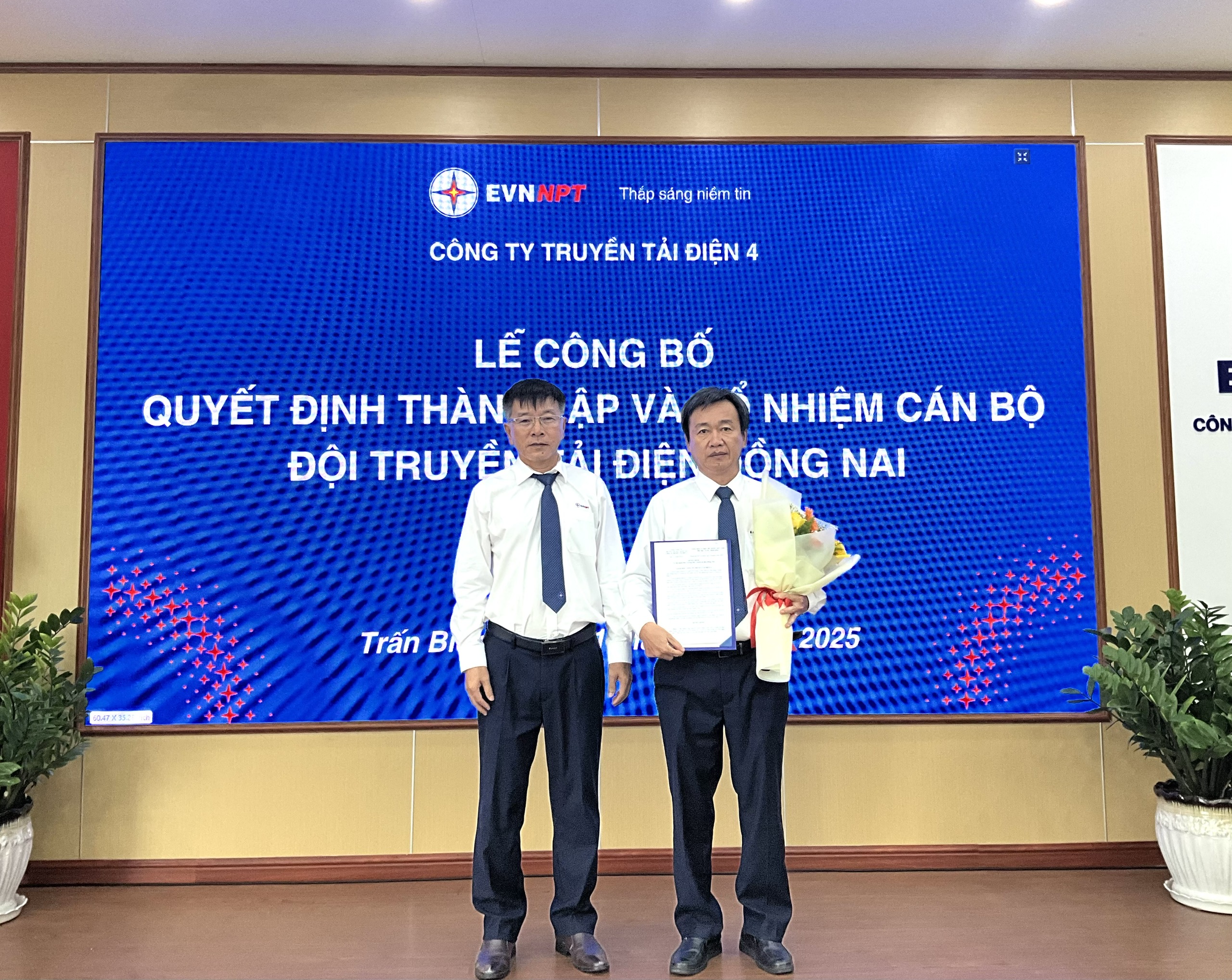 Đ/c Nguyễn Văn Bảy – UVTV Đảng ủy, Phó Giám đốc Công ty trao quyết định bổ nhiệm chức vụ Đội trưởng Đội TTĐ Đồng Nai cho ông Nguyễn Minh Dũng.