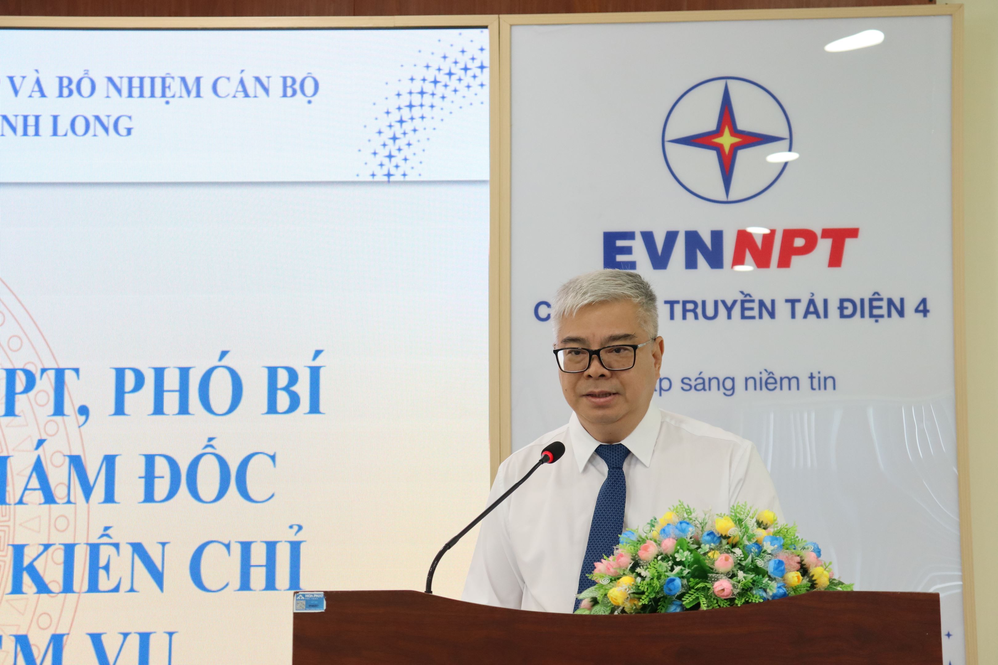 Ông Nguyễn Văn Hóa - Phó Bí thư Đảng ủy, Phó Giám đốc Công ty Truyền tải điện 4 phát biểu chúc mừng và giao nhiệm vụ cho các đồng chí được bổ nhiệm.