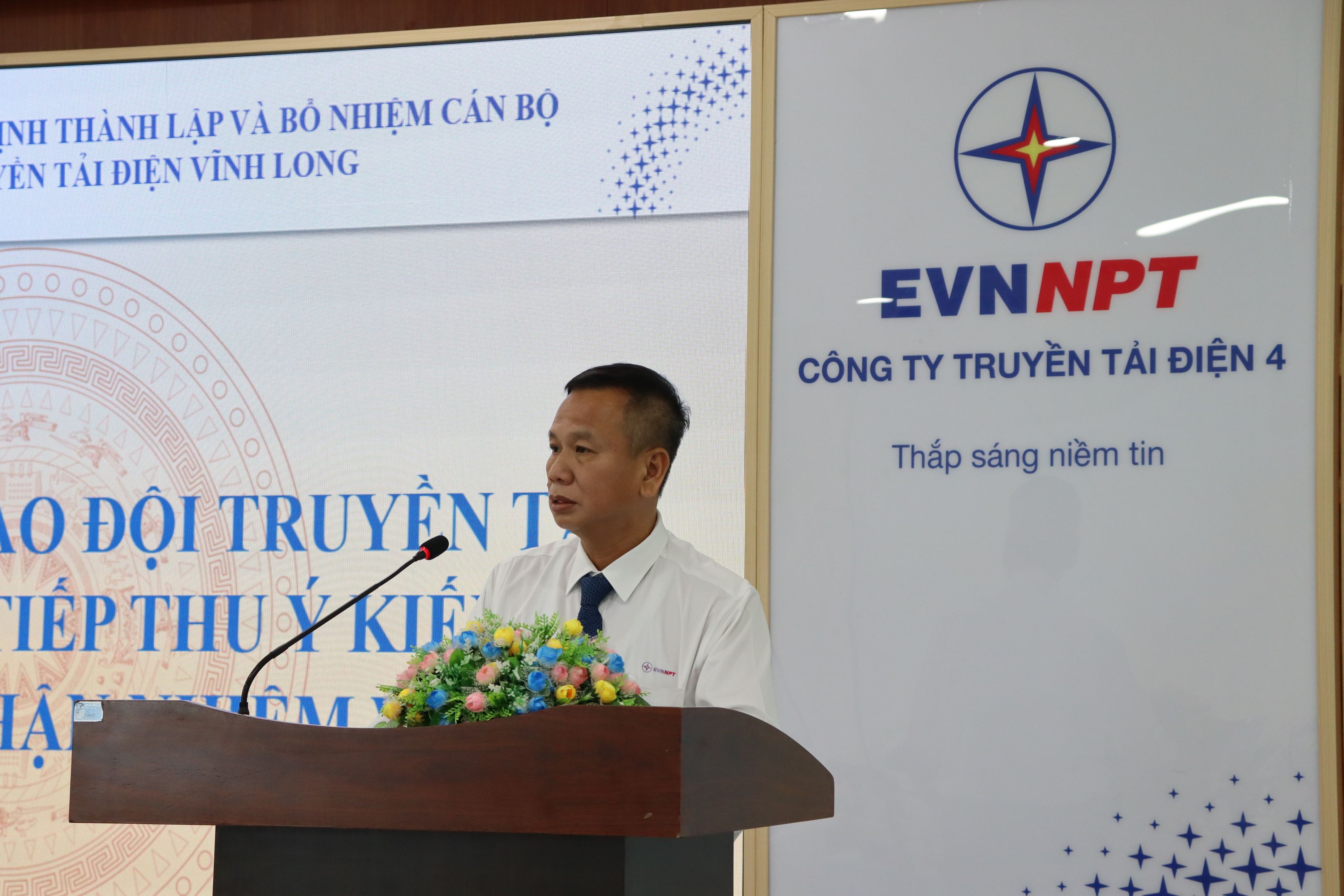 Tại buổi lễ, ông Nguyễn Văn Hóa – Phó Bí thư Đảng ủy, Phó Giám đốc Công ty Truyền tải điện 4 đã trao quyết định bổ nhiệm cán bộ lãnh đạo chủ chốt của Đội Truyền tải điện Vĩnh Long, bổ nhiệm ông Ngô Mạnh Trung - Giám đốc Truyền tải điện miền Tây 2 giữ chức vụ Đội Trưởng; bổ nhiệm ông Nguyễn Văn Chính - Tổ Trưởng Tổ TTLĐ Vĩnh Long, Truyền tải điện miền Tây 2 giữ chức vụ Đội Phó; bổ nhiệm ông Châu Sóc Kha, Phó Giám đốc Truyền tải điện miền Tây 3 giữ chức vụ Đội Phó.