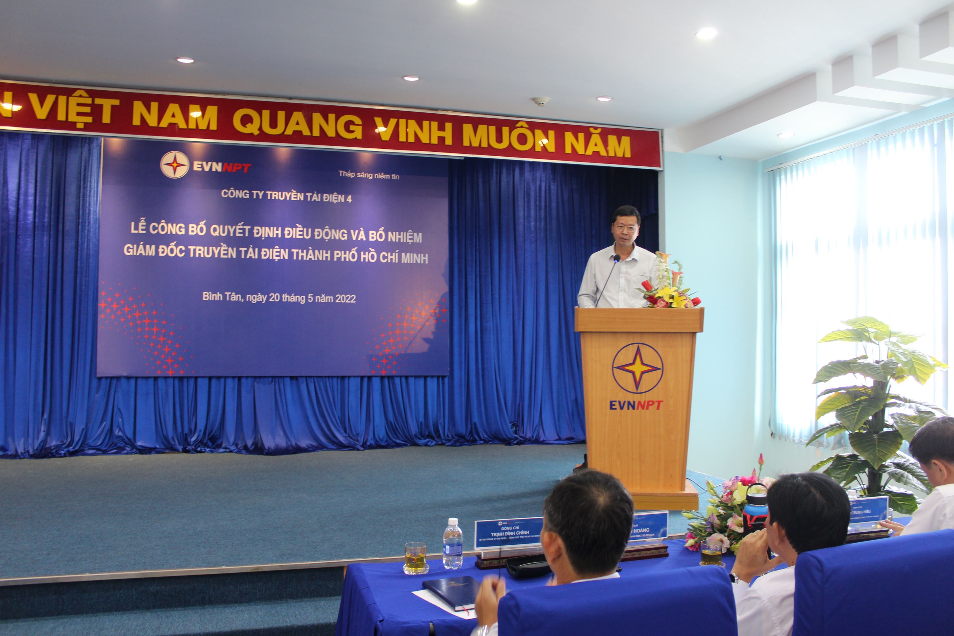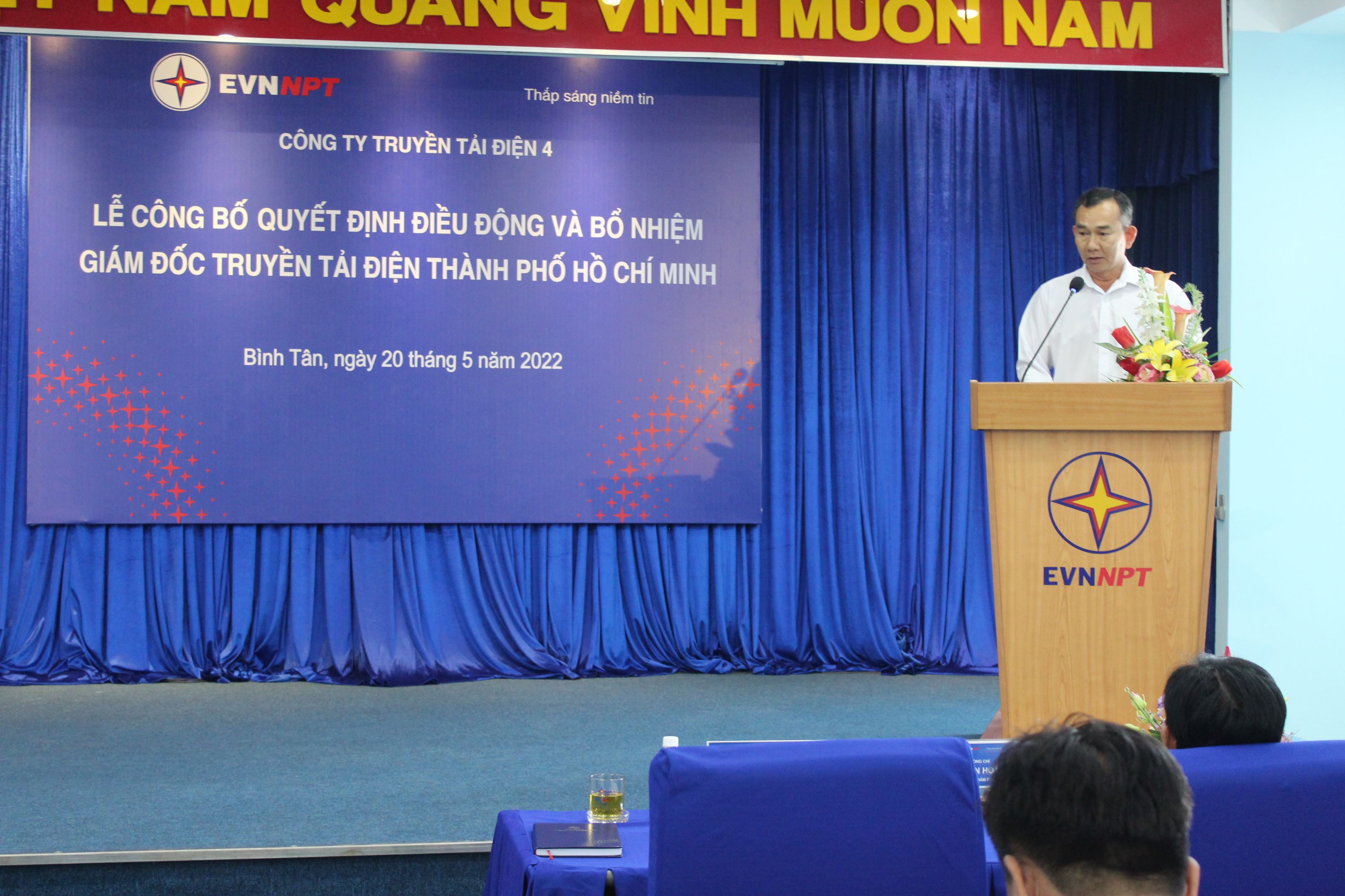 Tại Lễ công bố, Ông Võ Đình Thủy - Giám đốc Công ty Truyền tải điện 4 chúc mừng tập thể Truyền tải điện Thành phố Hồ Chí Minh được kiện toàn thêm lãnh đạo; chúc mừng đồng chí đã được Tổng công ty tin tưởng, tín nhiệm, bổ nhiệm chức vụ công chức lãnh đạo, viên chức quản lý. Đồng thời nhấn mạnh đồng chí có kinh nghiệm nhiều năm trong công tác quản lý vận hành được đánh giá có năng lực, có quan hệ tốt với đồng nghiệp trong và ngoài đơn vị. Đồng thời, tin tưởng rằng, với kinh nghiệm của mình, đồng chí sẽ hoàn thành tốt mọi nhiệm vụ được giao.